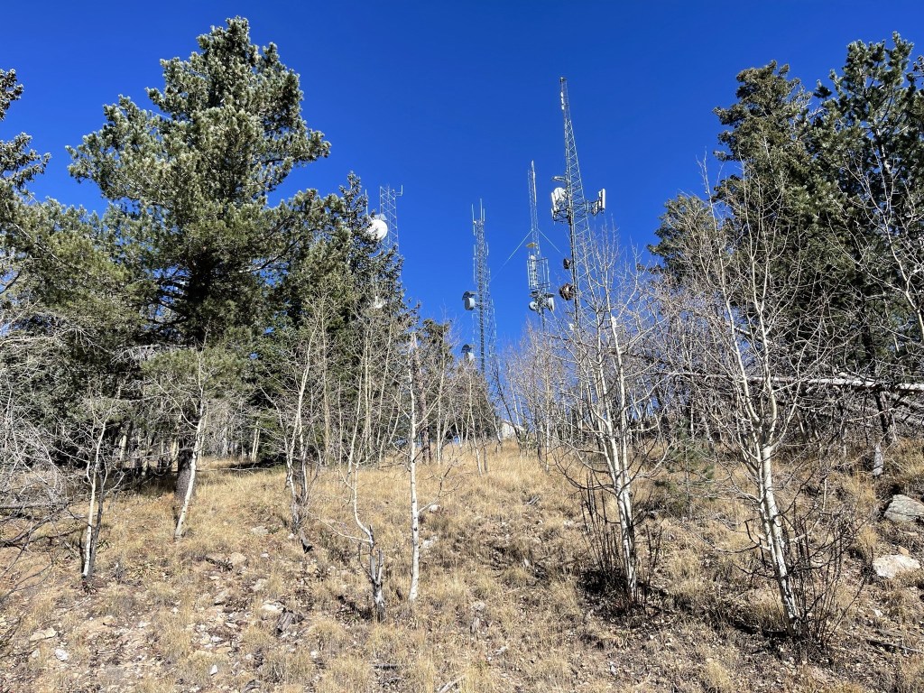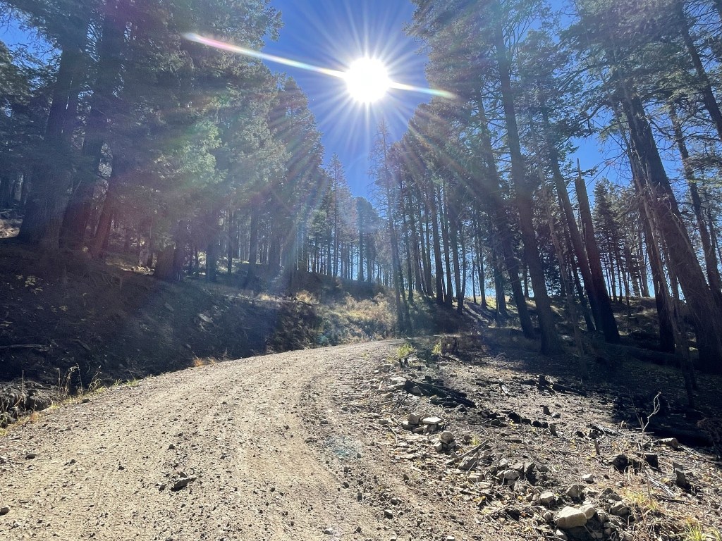 The last hike for the day would be Heliograph Peak (10022 ft). Unfortunately, this would be another road hike. The starting point was very close to where I was parked for Mount Graham, so I just drove down the highway a short way and then parked at a turnout where the dirt road to Heliograph began. I started this hike at 1:06pm from 9098 feet above sea level. I could already see the comm towers on top of its summit.