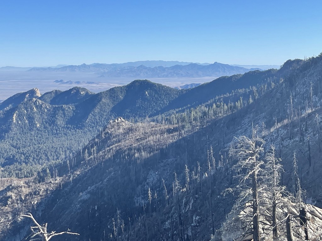 I had a good view of Mount Graham (right), Hawk Peak (center), and the observatory (left center).