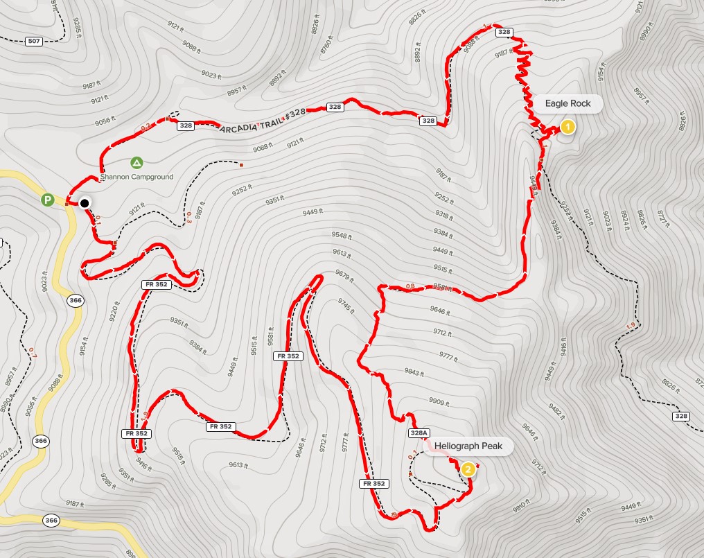 I then returned to the trail, hiked through Shannon Campground, and returned to the car at 3:19pm. This hike totaled 4.63 miles, 1076 feet elevation gain, and 2:12:32 total time.