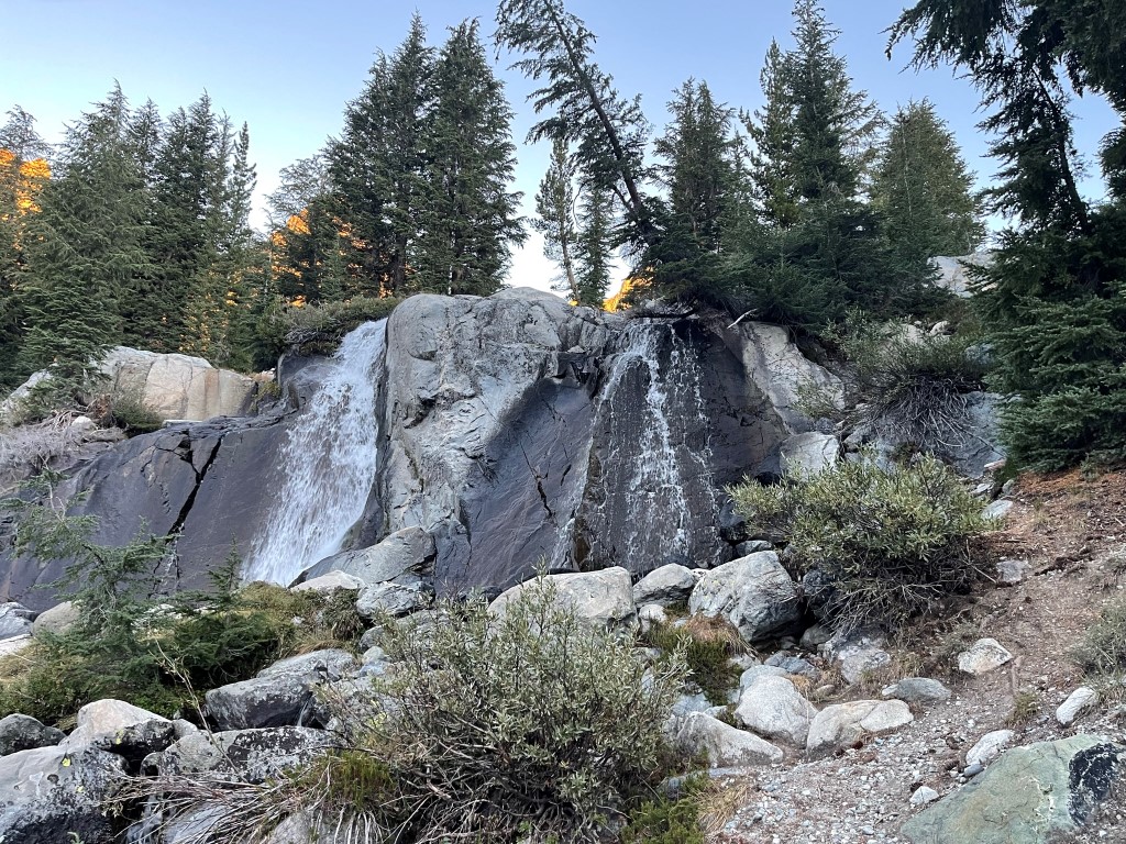 I crossed to the north side of the small creek I had camped by and followed a use trail northwest towards the peaks. I passed a small waterfall.