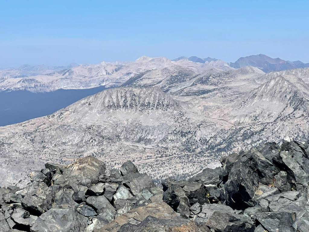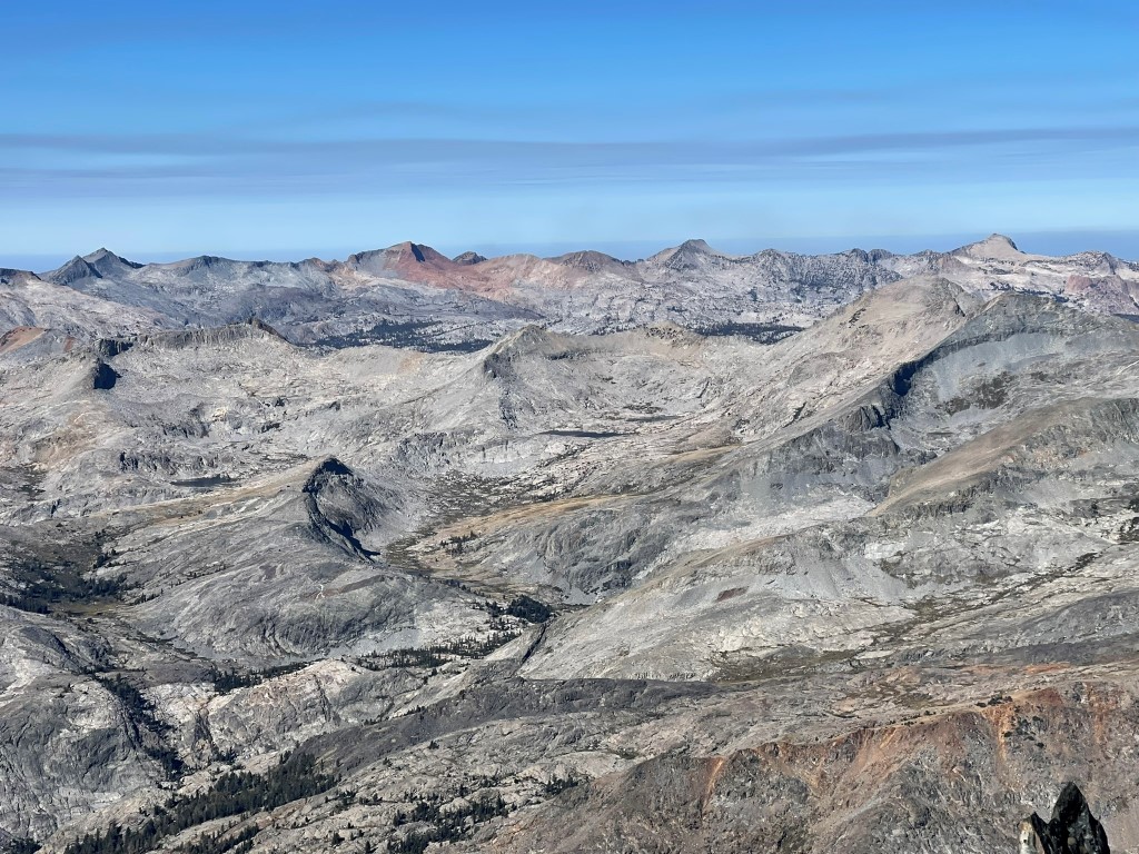 To the west: Merced Peak, Red Peak, Gray Peak, and Mount Clark: