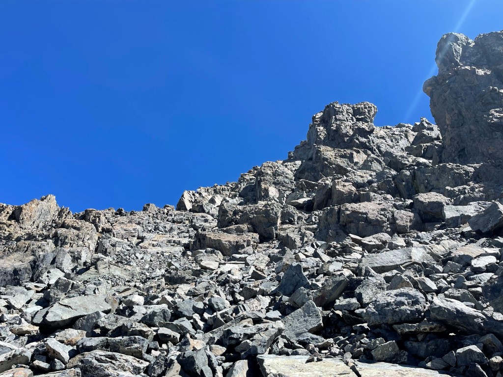 Banner was a straightforward class 2 talus scramble. About halfway up I got hit by a slight wave of nausea. I had been dealing with a mild cold the last few days, so I figured it was that plus a little dehydration. I took a 15 minute break while I hydrated and had a little snack. I felt better and continued the rest of the way up.