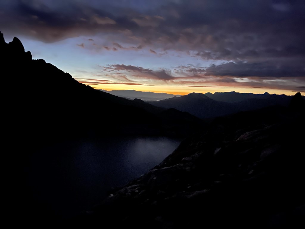 I set up camp at a small grassy flat on the northern shore of the lake. The wind really picked up which made for a very cold evening as I was setting up and having dinner. Stats for day 2 were 8.32 miles, 5679 feet elevation gain, and 10:18:49 total time.