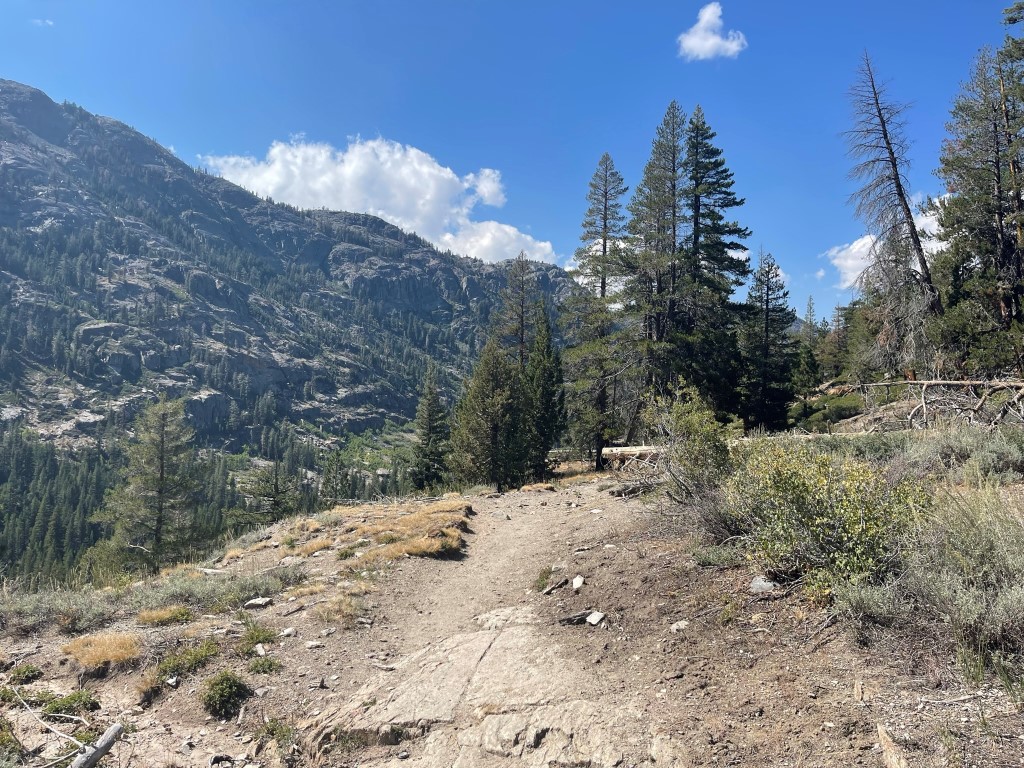 The overnight lot is located 0.4 mile up the road from the actual trailhead. I hiked south past the day use lot and the ranger station and made it onto the trail. At 0.6 mile I went right towards the PCT/JMT.