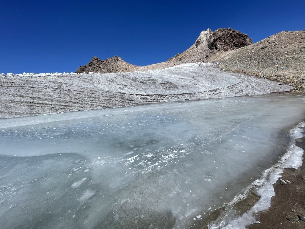 I decided to explore the Whitney Glacier a little before continuing my descent. There was a frozen pool on the south end of the glacier.