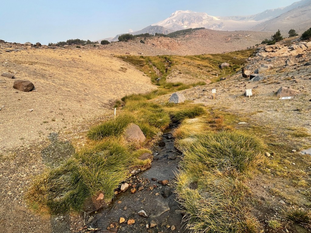 At 6.1 miles I found a bubbling sulphur springs around 13900 feet.
