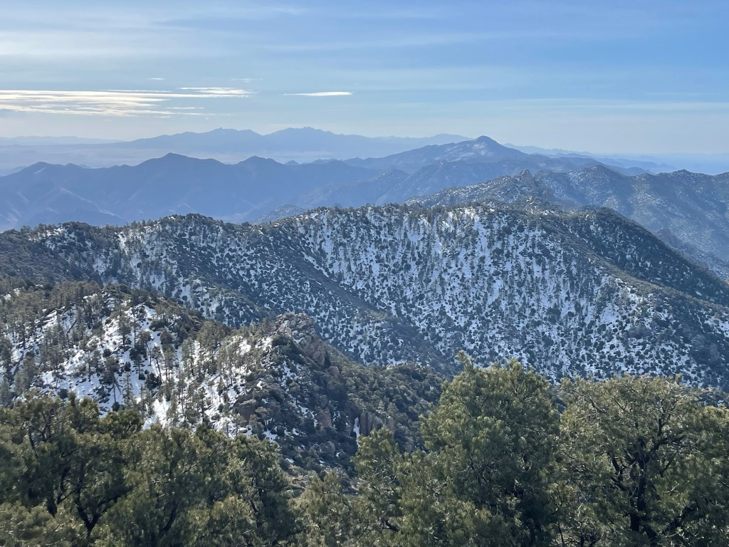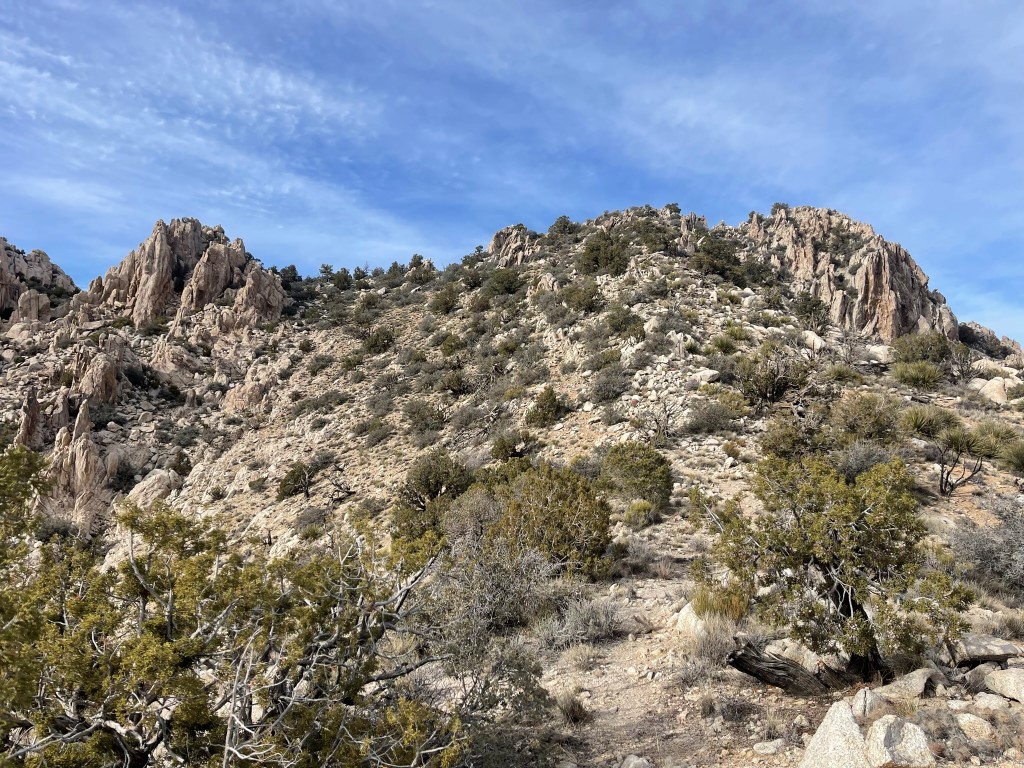 Mount Tipton is a 7148 foot peak located just north of Kingman, Arizona. Mount Tipton has over 3000 feet of prominence and is the high point of the Cerbat Mountains. It is also one of 9 Arizona peaks on the DPS list. Garret and I had driven to the trailhead the night before and camped there. From US-93, we went northeast on Pierce Ferry Road, then east on 7th Street, the south on Inglewood Drive, then east on 5th Street, then northeast on a rough road until we parked. The roads were in good condition up until the final dirt road. The last mile had large rocks in the road, so I decided to park about a quarter mile from the end. We woke up the next morning and drove the rest of the way in Garret’s 4runner. We began hiking at 7:02am from 3755 feet above sea level. It was 34 degrees.