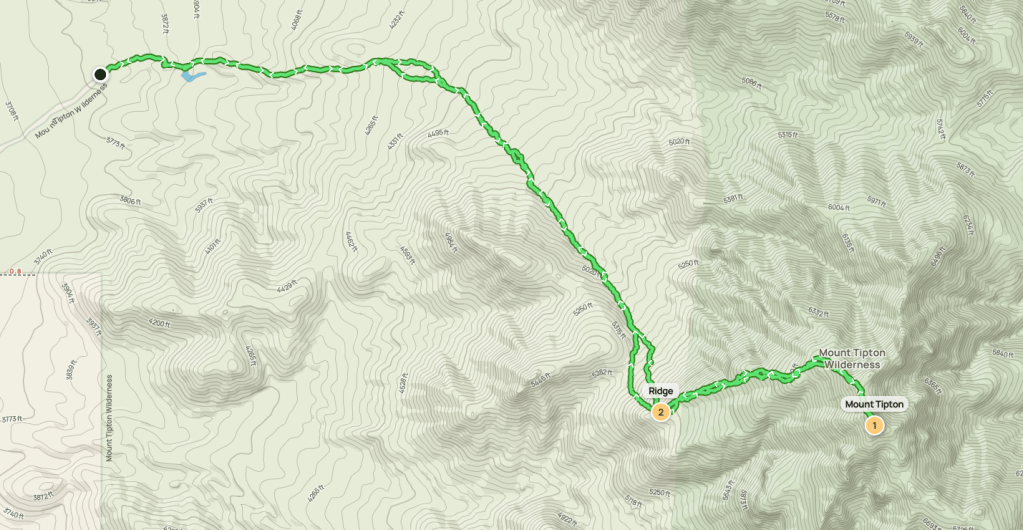 We reached the car at 12:27pm. Stats for this hike were 7.96 miles, 3356 feet elevation gain, and 5:23:30 total time.
