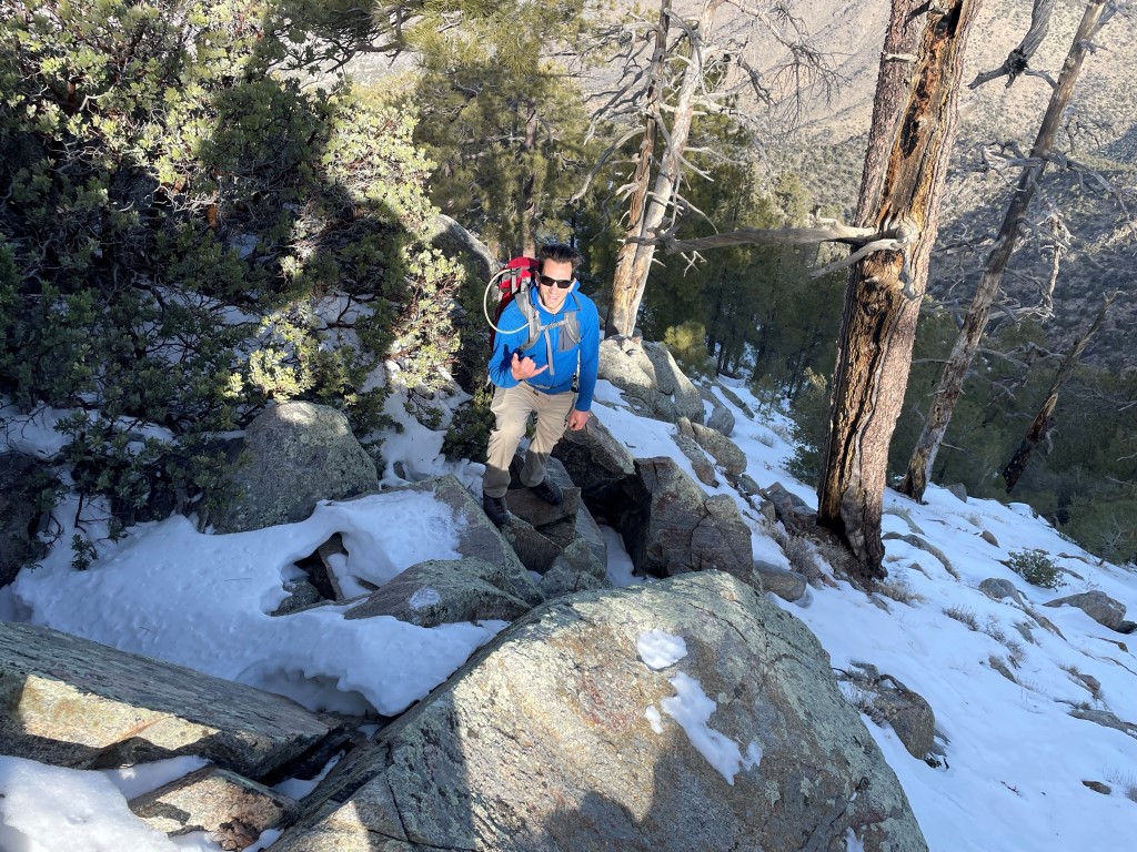 We began the descent after a nice break. We found an alternate route to the class 3 portion from earlier, but we still had to make a low class 3 downclimb on the new route we found.