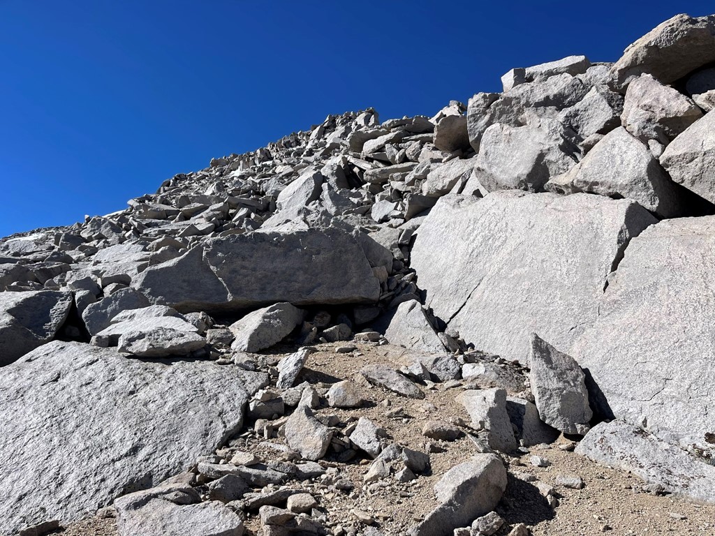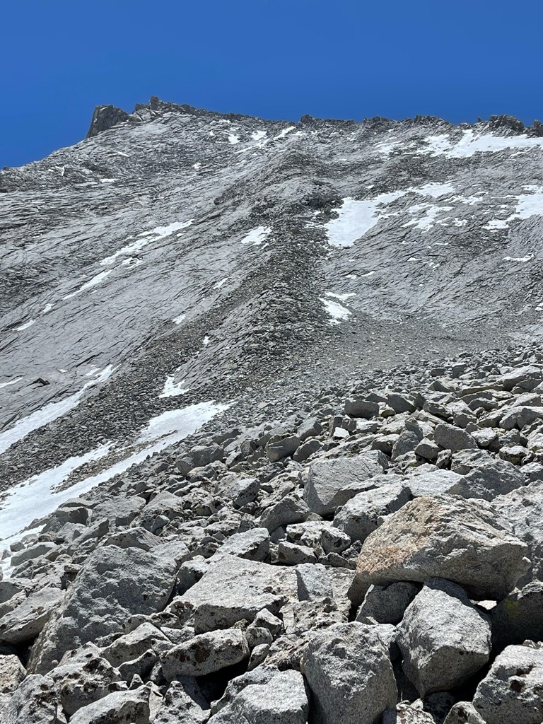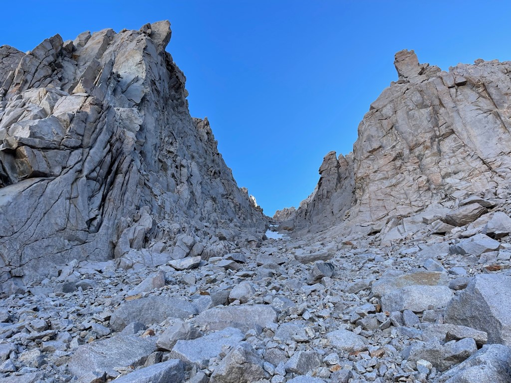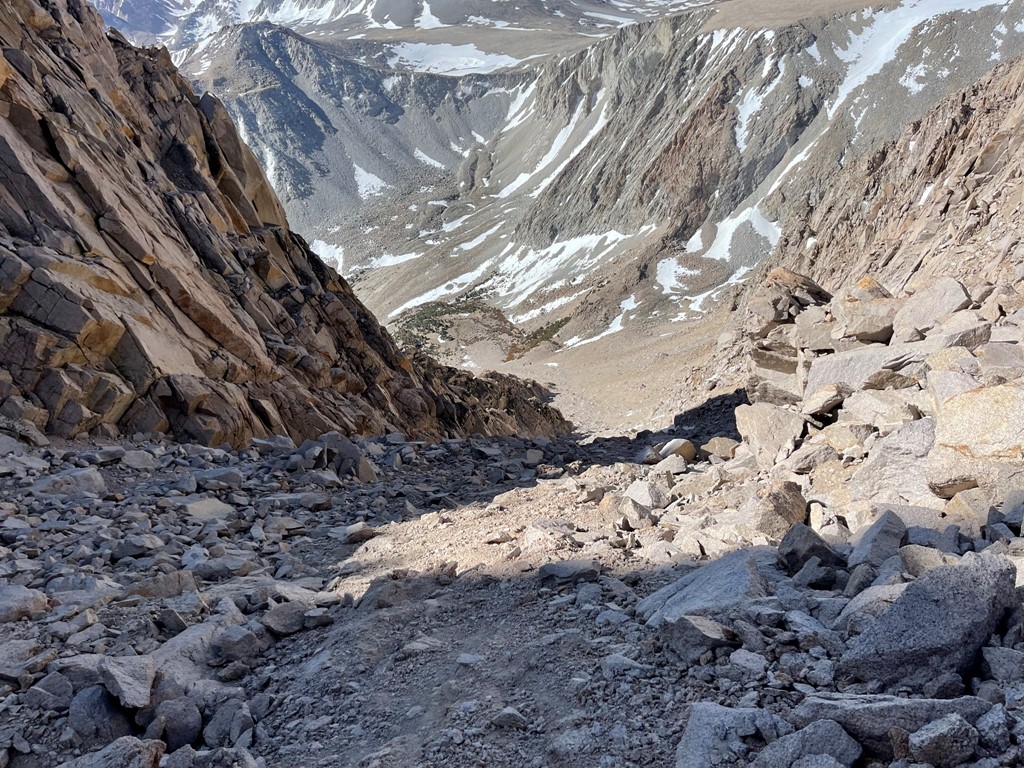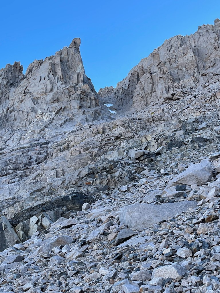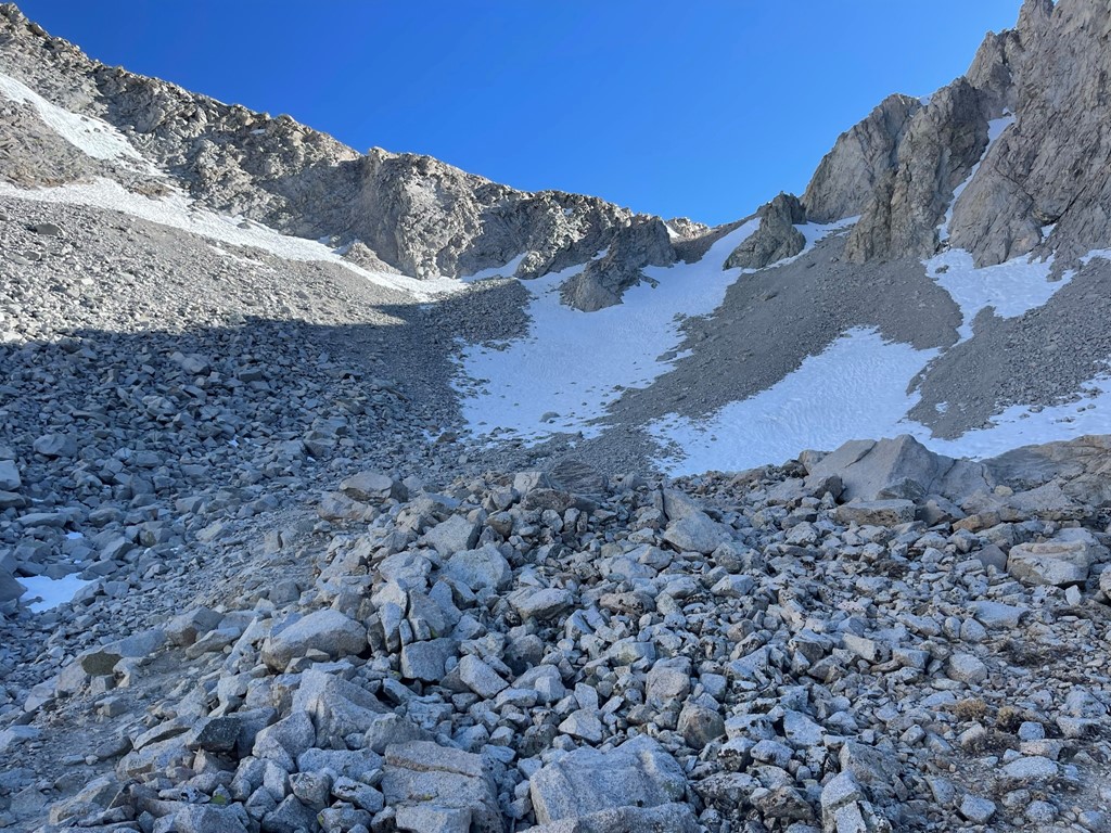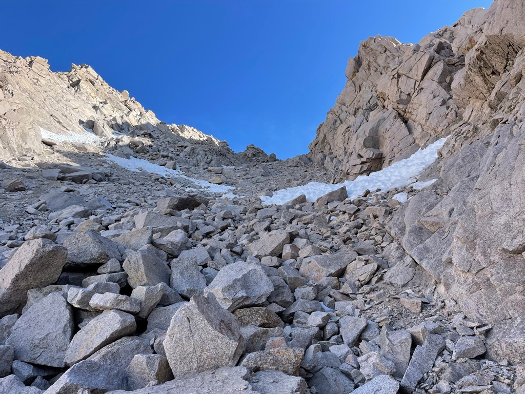 The last 500 feet or so became very steep and loose. I tried to stay on the right side of the chute where the rocks were larger, but it was still very difficult and time consuming.