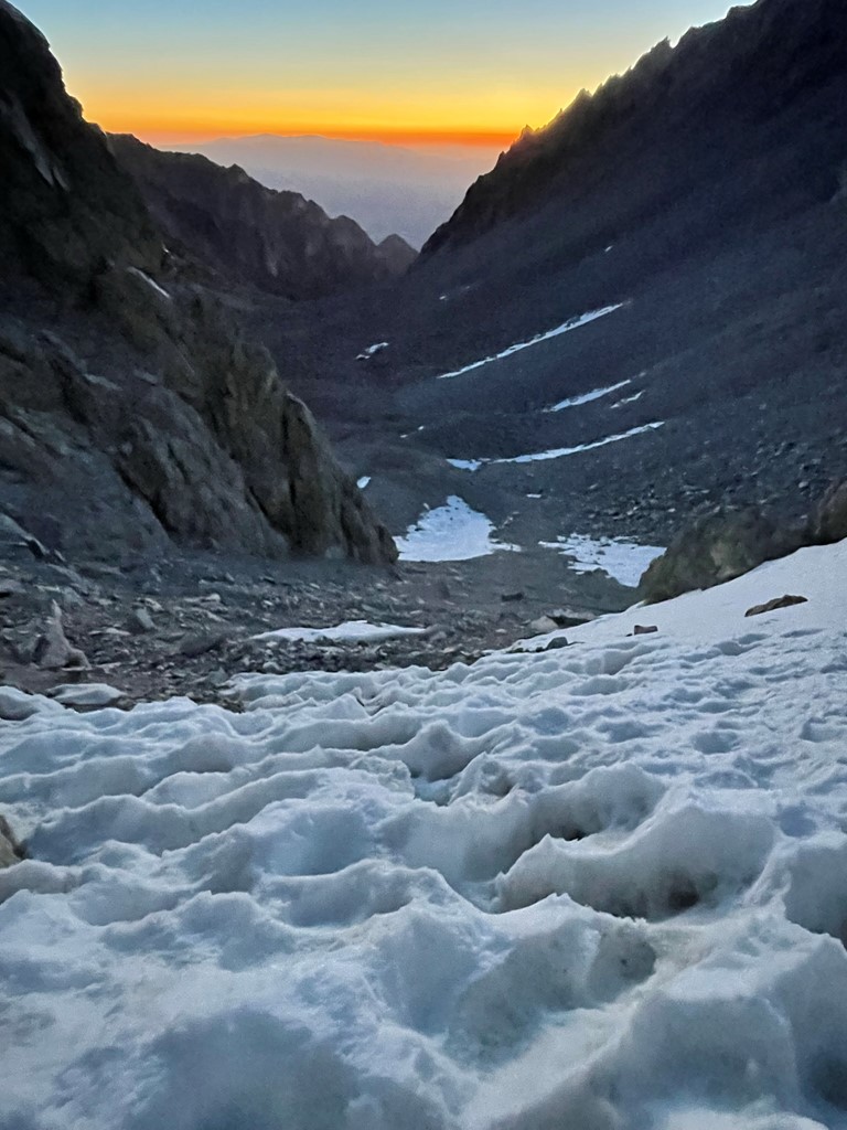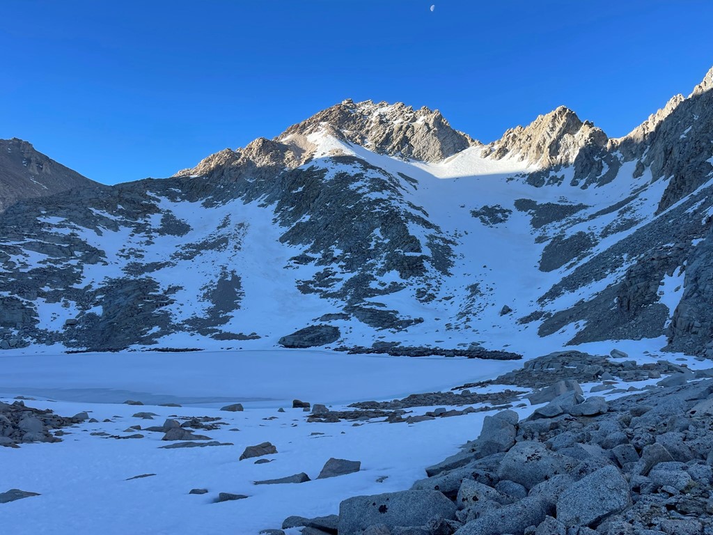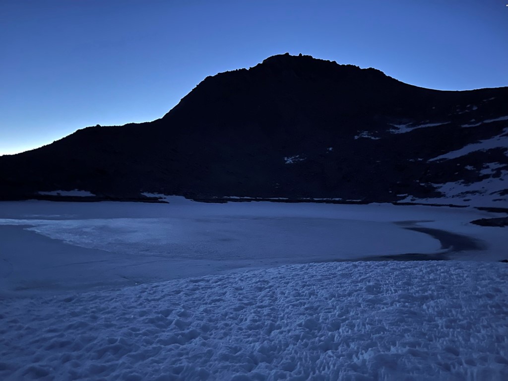 I woke up at 4:30am and started hiking at 5am from 12000 feet. I said goodbye to my frozen lake.