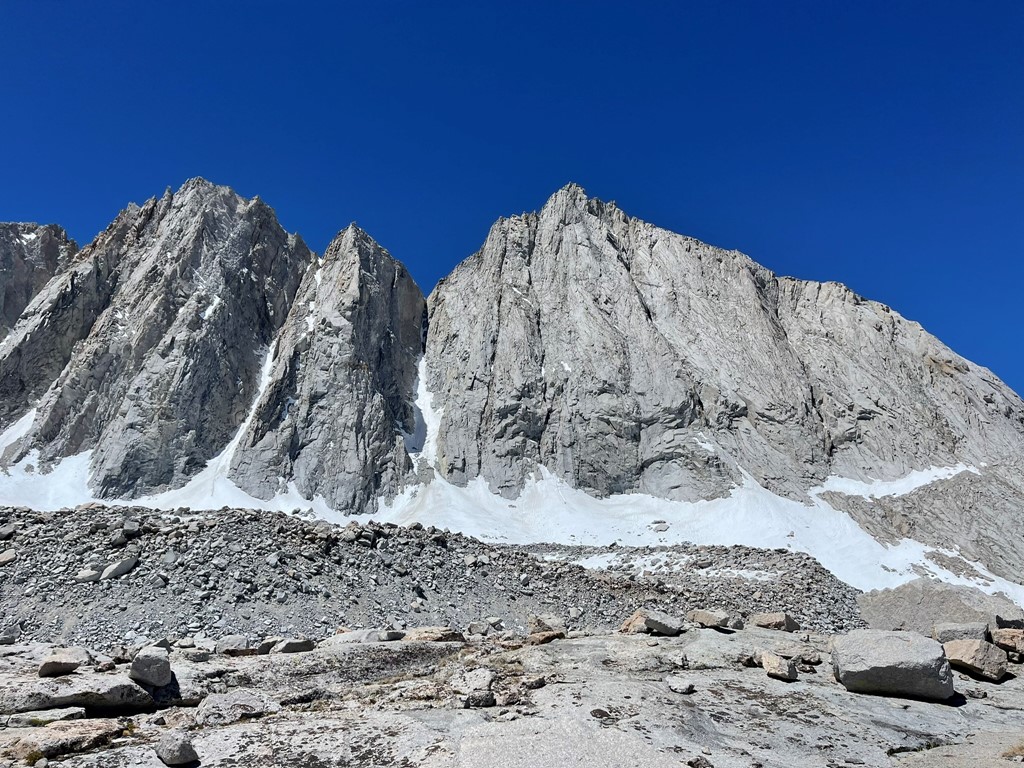 At 14373 feet, Mount Williamson is the 2nd highest mountain in California and the 6th highest in the contiguous United States. Situated on the eastern edge of the Sierra, it rises dramatically nearly 2 vertical miles over the Owens Valley. It is one of the most visually striking mountains and is undoubtably one of the crown jewels of the Sierra. Just to the west of Williamson is another 14er, Mount Tyndall (14019 feet). With over 1000 feet or prominence, Tyndall is an impressive mountain in its own right. A few miles to the north of Williamson and Tyndall is 13976 foot Mount Keith. Mount Keith is often overlooked due to being 24 feet short of a 14er and 97 feet short of having 2000 feet of prominence. I planned to climb the trio of peaks via a 3 day 2 night backpack starting from the Shepherd Pass Trailhead. Nothing about the weekend would be easy – just hiking to Shepherd Pass requires an 11 mile hike and over 6000 feet of elevation gain. I left San Diego around 5am Friday morning and drove 5.5 hours to the Shepherd Pass Trailhead. There are a few miles of dirt roads to get to the trailhead – they are a little bumpy, but I did see a passenger car and a minivan parked there. Google Maps will take you there no problem. I began hiking at 10:36am from 6307 feet above sea level.