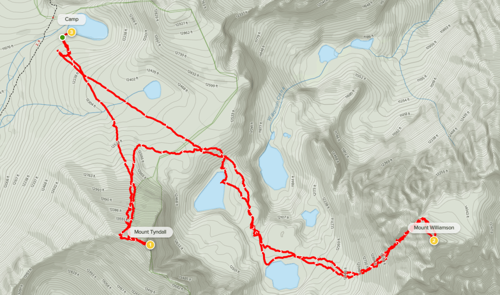 I had a great view of the 2 14ers I had climbed the day before. Mount Williamson: