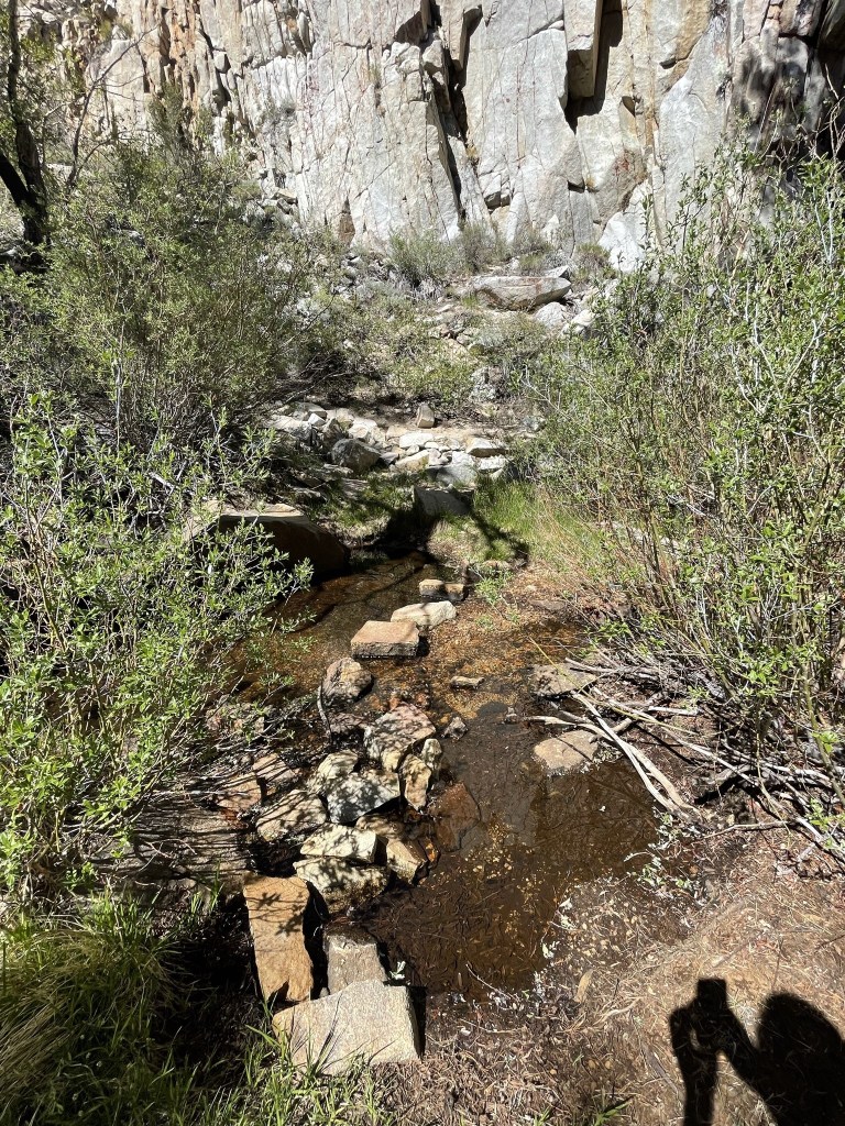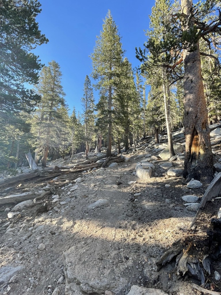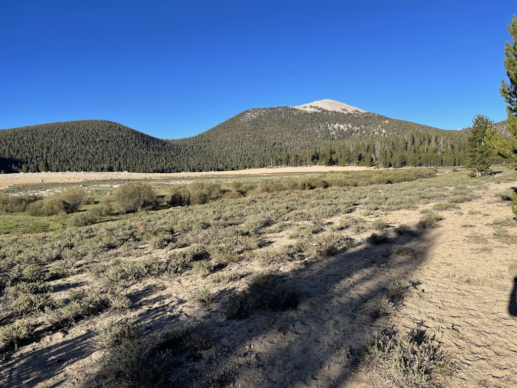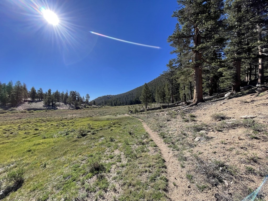 I ran into a guy who was out for a short 2 or 3 day backpack. He mistook me for a PCT hiker and asked if I was looking for water. He was impressed when I explained I was planning to climb the peak. The trail meandered east along the southern edge of a small meadow. Diaz Creek flows through this meadow which is why he assumed I was here for water.