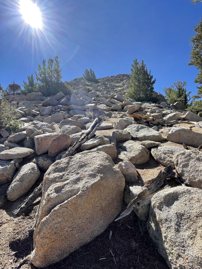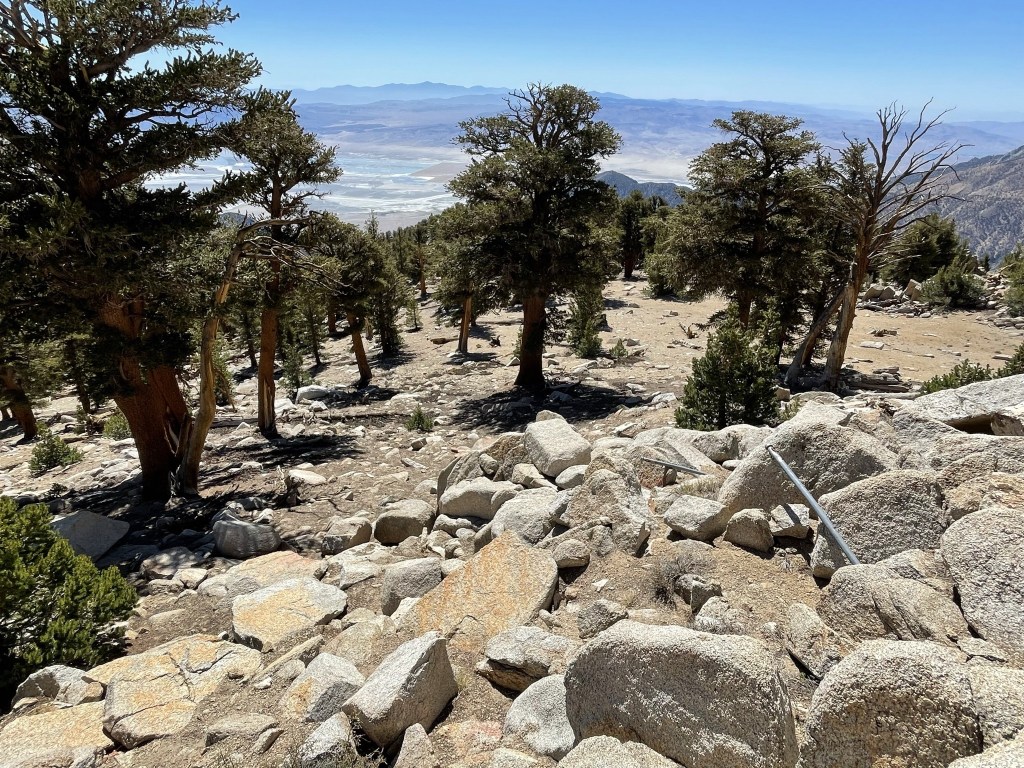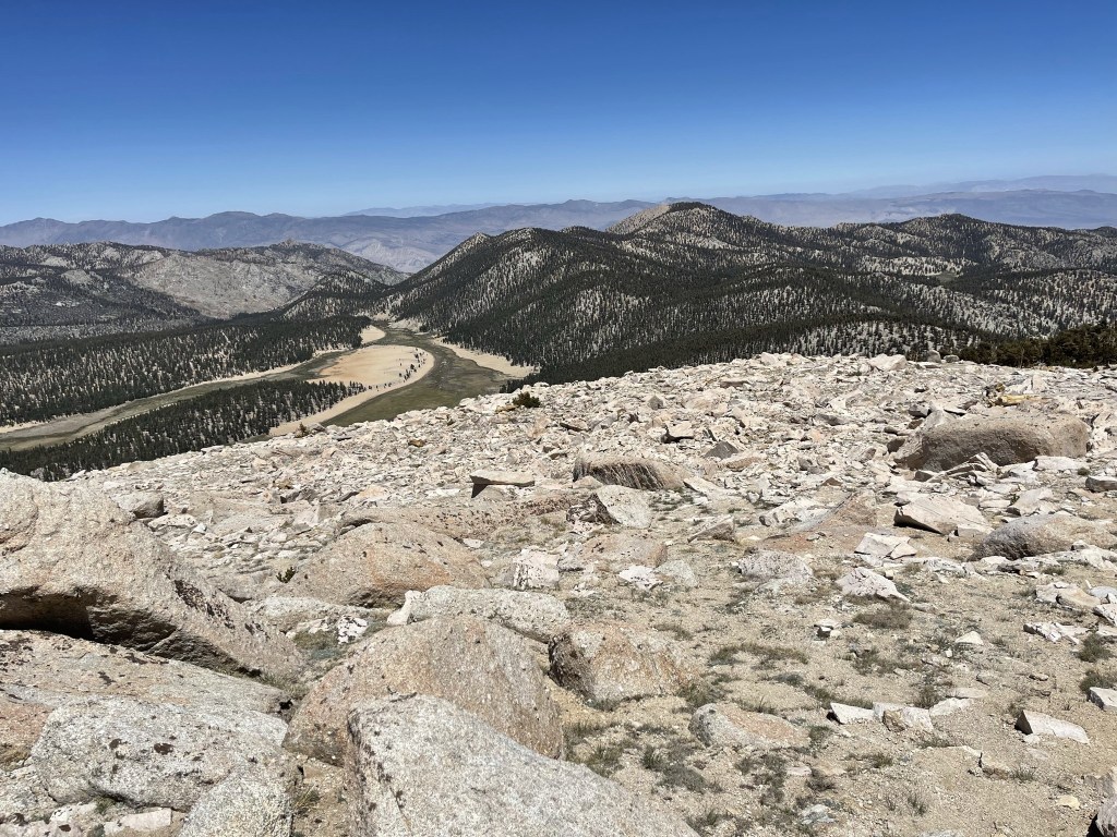 I began descending after a 30 minute break. I went northeast off the summit towards Horseshoe Meadow.