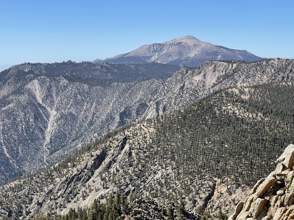 Wonoga Peak is further east than the other peaks I had climbed earlier, so I had a great view of the High Sierra to the north for the first time all day. The northern view on the previous peaks had mostly been blocked by Mount Langley. I could see Mount Williamson, the 2nd highest mountain in California.