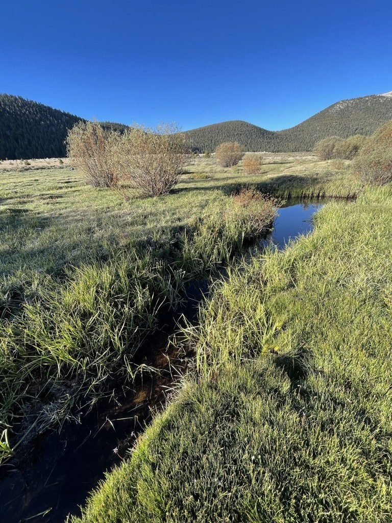 I passed through the meadow again and crossed a creek at 14.6 miles.