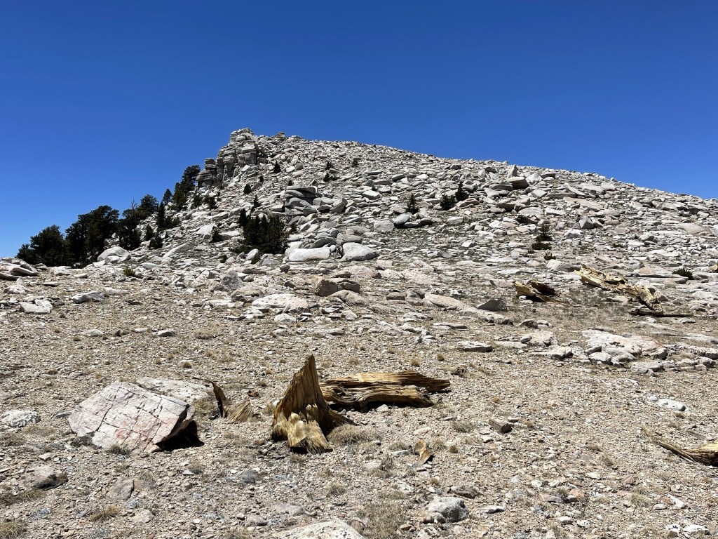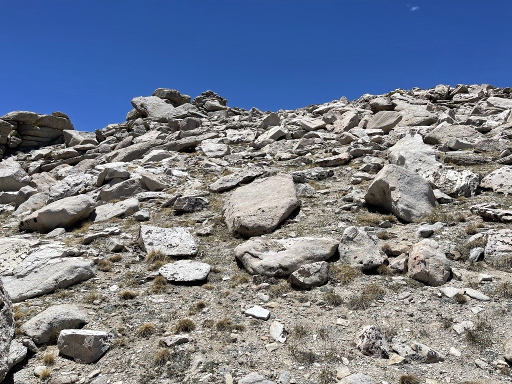 It got very rocky towards the top. At 5.7 miles I passed a false summit.