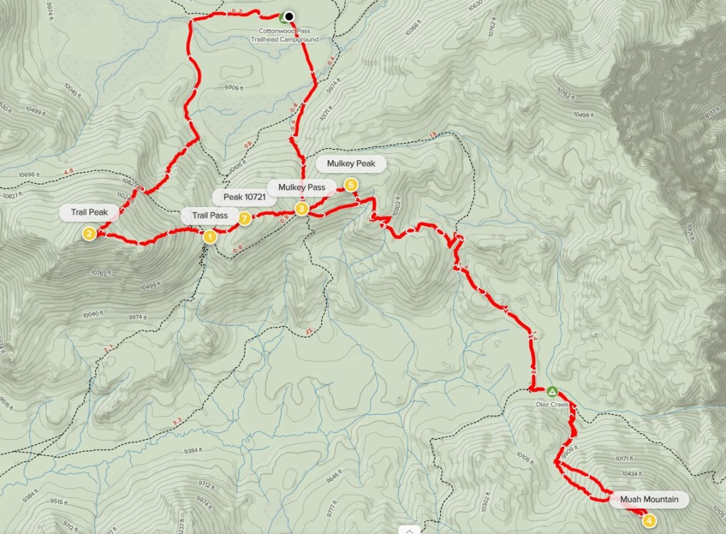 Muah Mountain, Mulkey Peak, Peak 10721, and Trail Peak