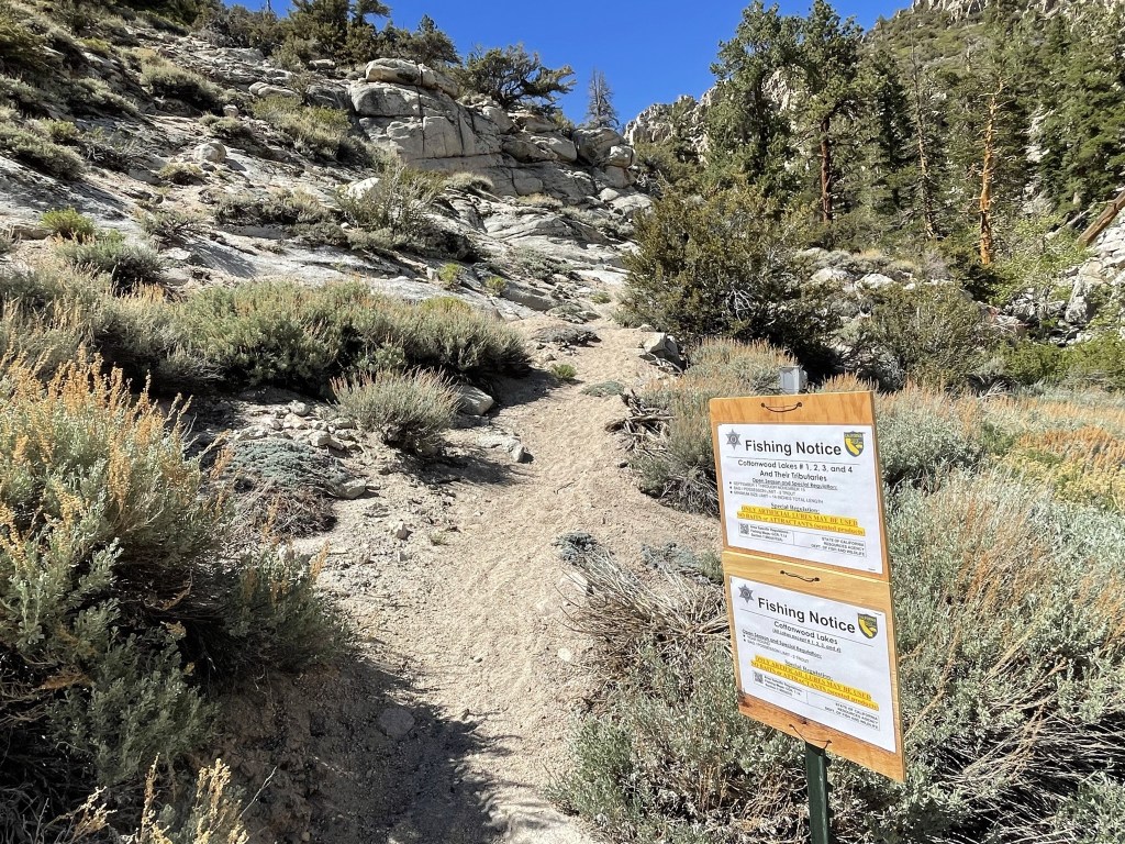 For day 2 of my 3 day trip to the Sierra I was planning to climb Muah Mountain (11016 feet) and Trail Peak (11605 feet). Both peaks are near the Sierra Crest just south of Horseshoe Meadow. Muah is on the Sierra Club Sierra Peaks Section list, so that was my primary goal for the day. Horseshoe Meadow is a very popular area containing numerous trailheads, walk in campgrounds, equestrian facilities, and tons of parking. I had slept in my car the night before in the parking lot, so I slept in a little since I had all day (and it was one of the longest days of the year). I decided to park at the day use picnic area just east of the Cottonwood Pass Trailhead Campground. I began hiking at 6:47am at 9849 feet above sea level.