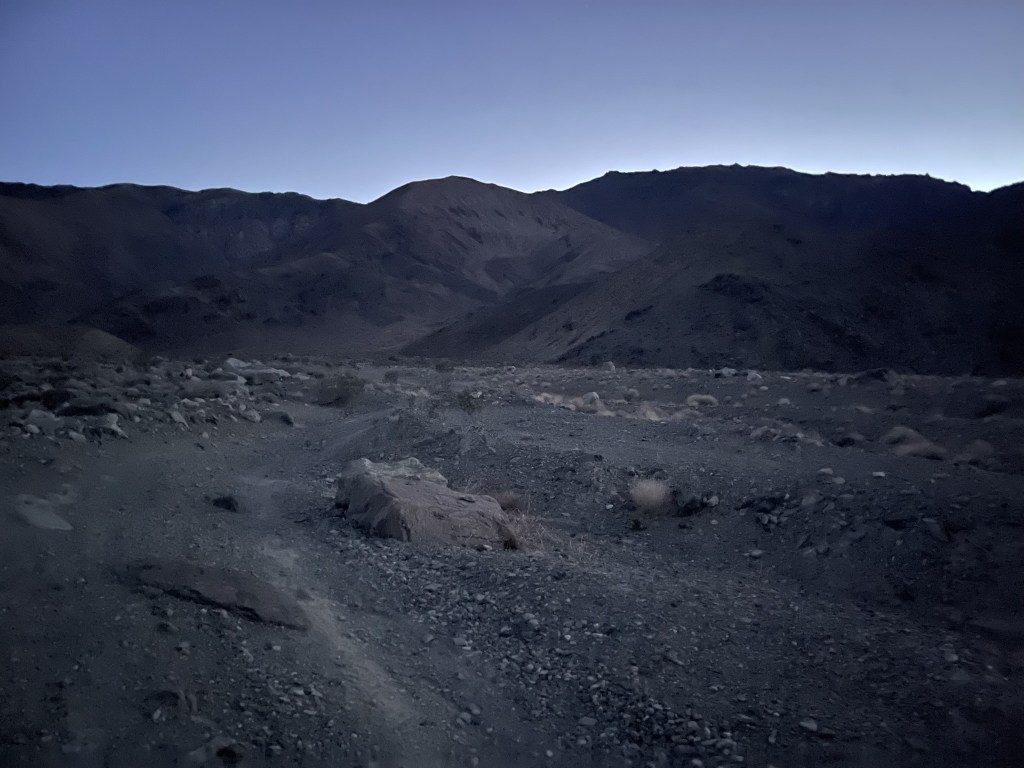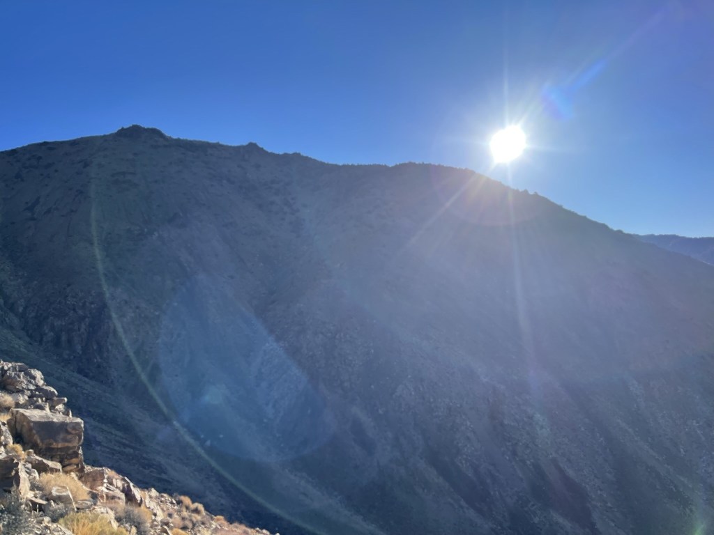 The Inyo Mountains are a north-south trending mountain range in California that parallel the Sierra Nevada to the east across Owens Valley. The mountain rise over 6000 feet from the Owens Valley, although they pale in comparison to the Sierra on the other side. New York Butte (10668 feet) is one of the highest peaks in the Inyos and is included on the Sierra Club Desert Peaks Section List. I intended to climb New York Butte as well as nearby Peak 10327 in a long day hike starting from Long John Canyon. We were in the middle of a very warm and dry winter, which was unfortunate, but it gave me perfect conditions to climb these peaks in mid-February. Temperatures were in the 50s even above 10000 feet and there was hardly any snow left. I left San Diego after work on Friday and made the long drive to Lone Pine (6 hours with traffic). From US 395 just north of town, I turned right (east) onto Lone Pine Narrow Gauge Road. I drove on this good dirt road about 3 miles until I reached Owenyo Lone Pine Road. I crossed this road and continued east on a narrow dirt road that leads into Long John Canyon at the foot of the Inyos. This road was pretty rough, so I parked after less than a mile. I woke up early the next day and began hiking at 6:02am from 3976 feet above sea level.