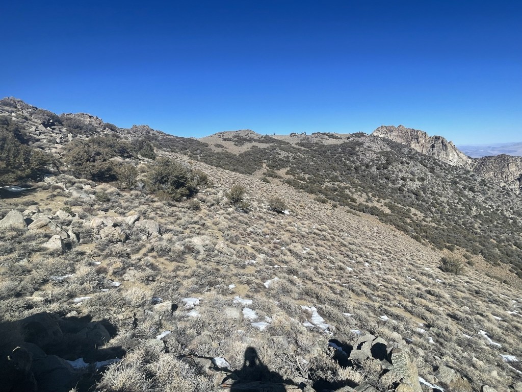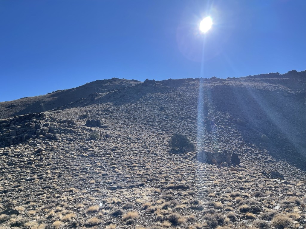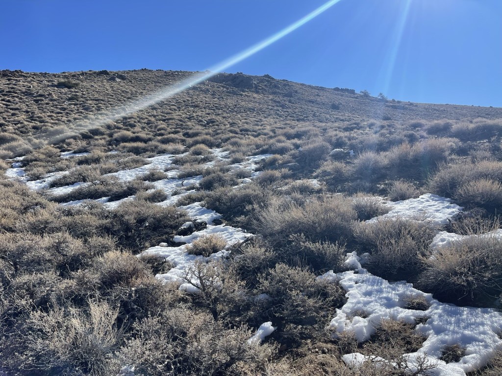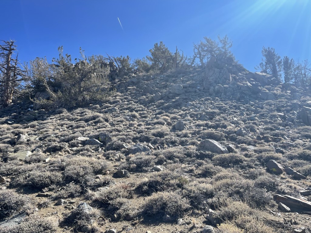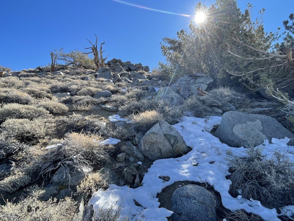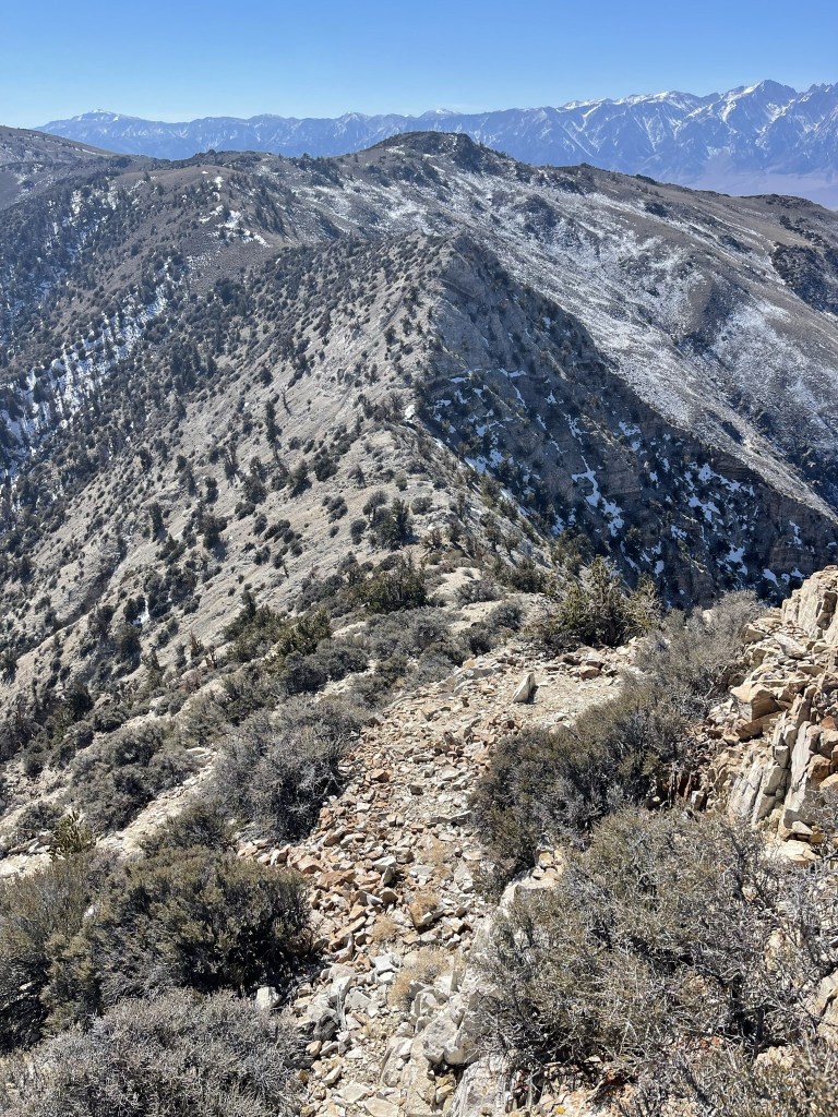 I reached the foot of the mountain range and began climbing a steep ridge. This ridge would take me nearly all the way up as it climbed 5000 feet to the Inyo Crest.