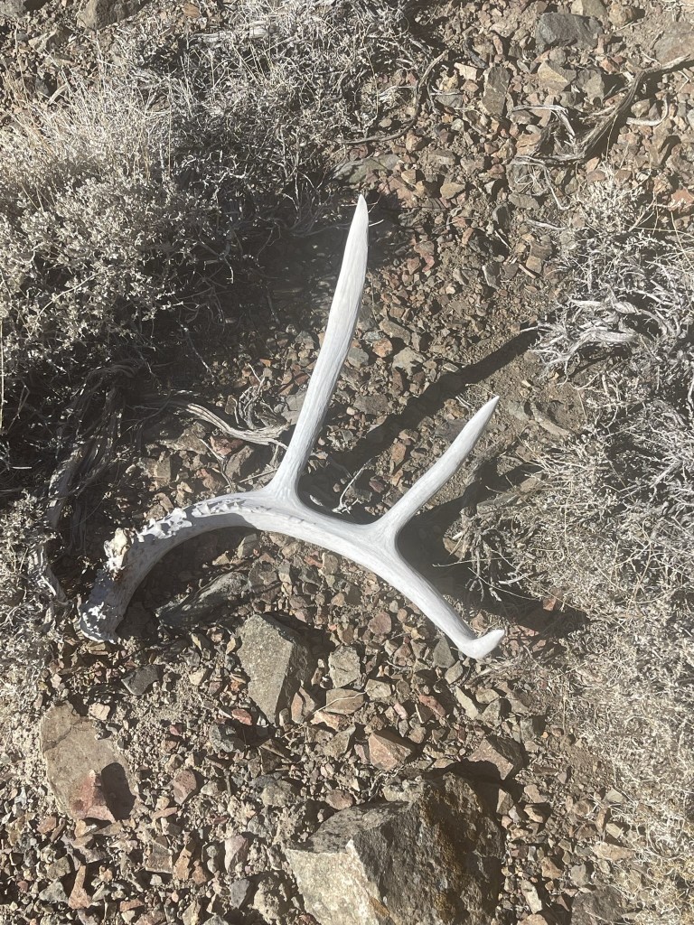 I then started the long 6000 foot descent back down. I rejoined my ascent route on the ridge west of New York Butte. I found a deer antler on the way down.