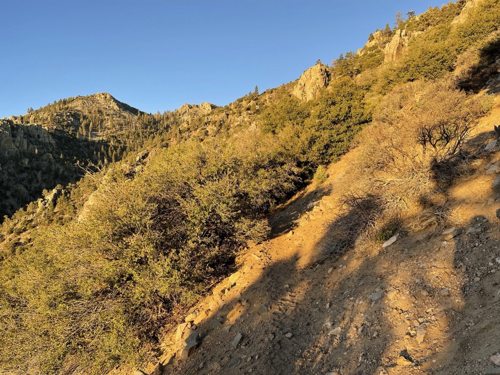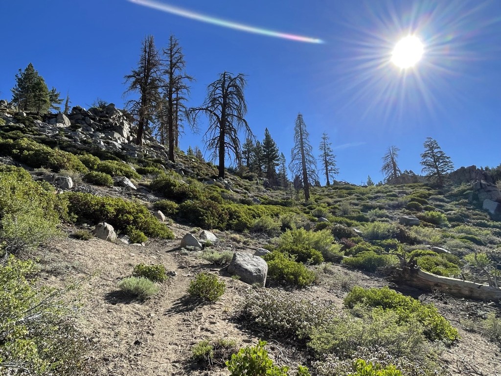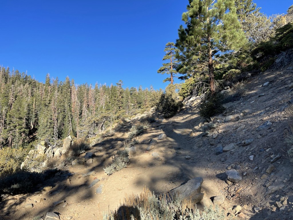 The next section looked like it may have burned in recent history as it was mostly just brush with a few dead trees still standing. The trail began to steadily gain elevation again.