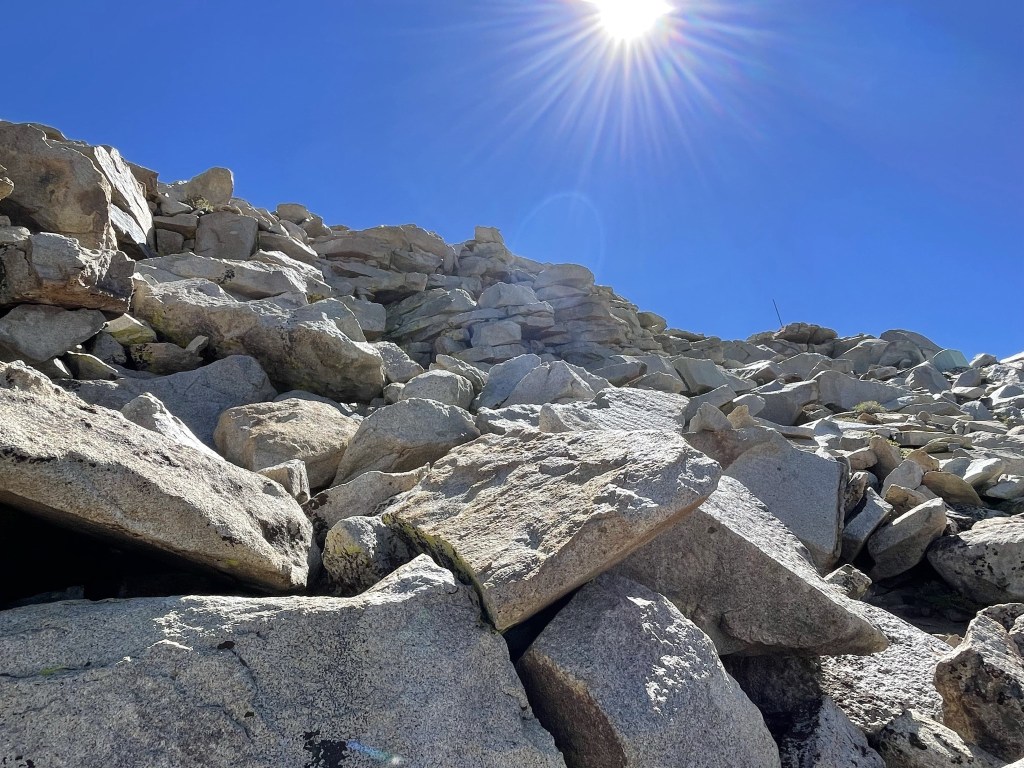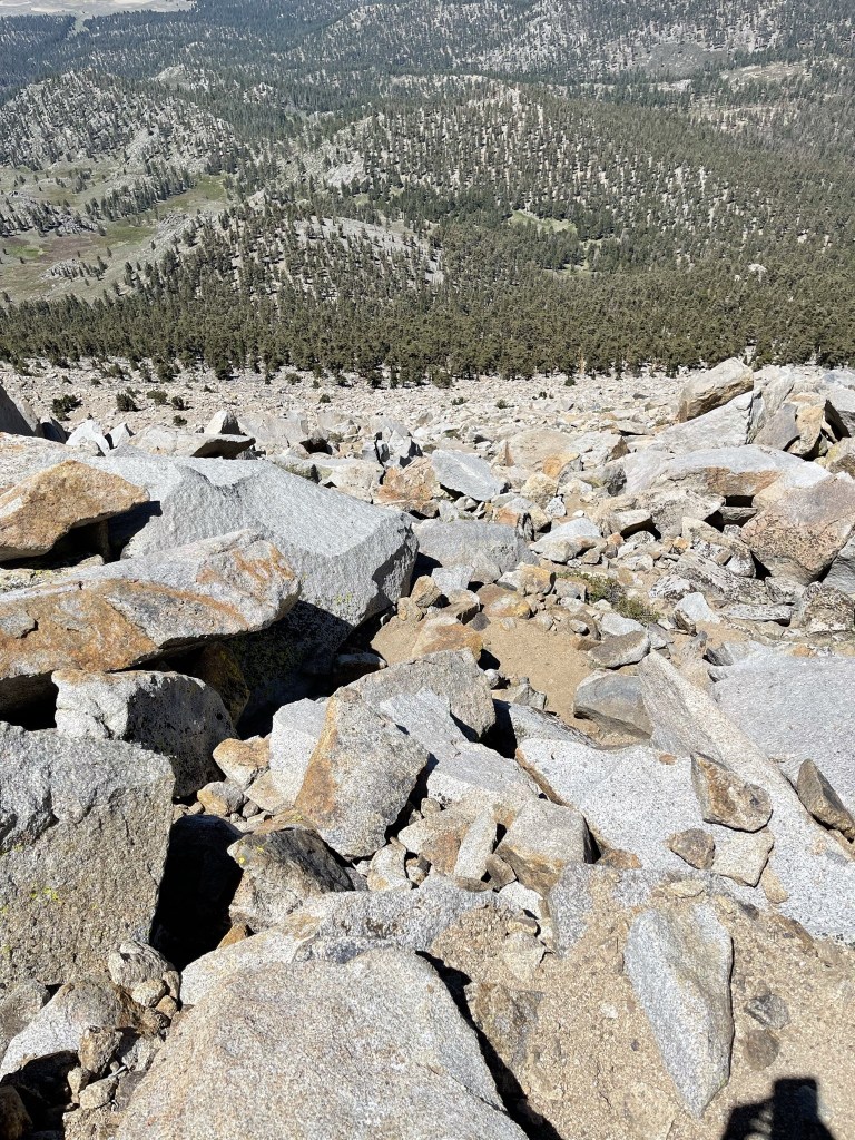 There were some larger boulders near the top, but it was possible to keep the route class 2 with careful route finding.