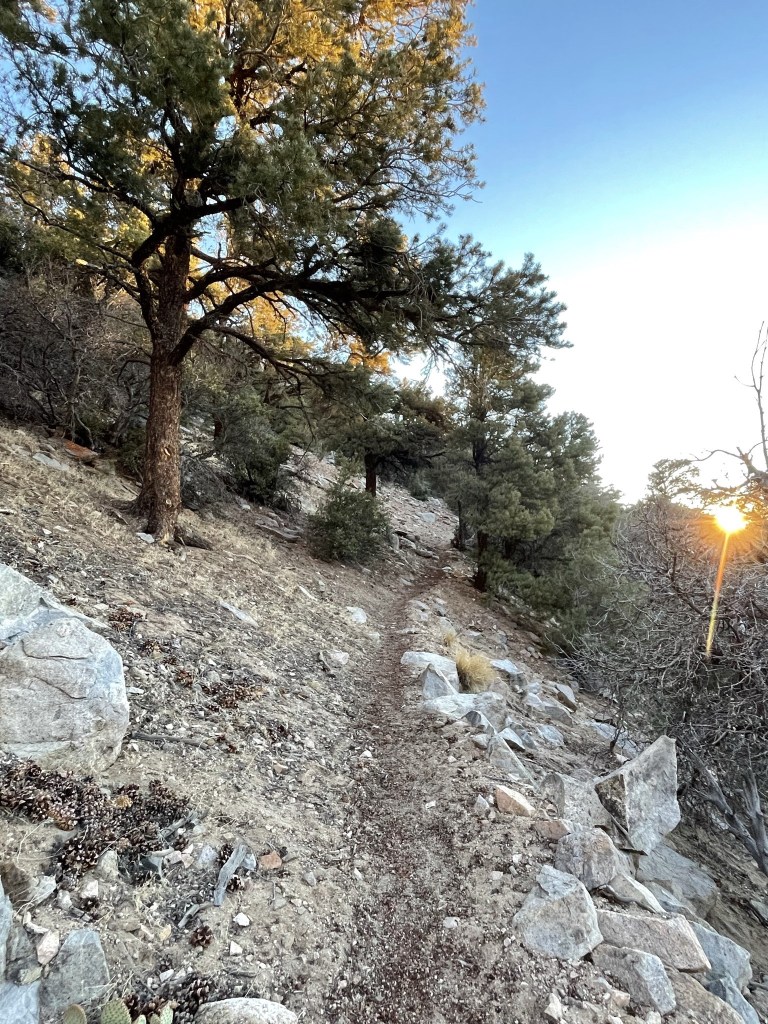 It was already 74 degrees when I started, so I knew I wanted to get as high as possible before the heat of the day set in. The trail began by heading west into the foothills.