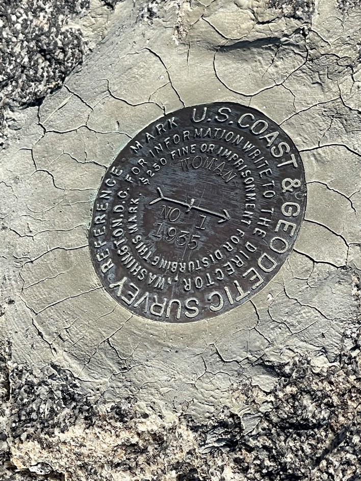 We signed the register which was placed in 1998. The previous ascent was March 13th. I located the “Woman” reference marker no. 1, but did not find any other markers.