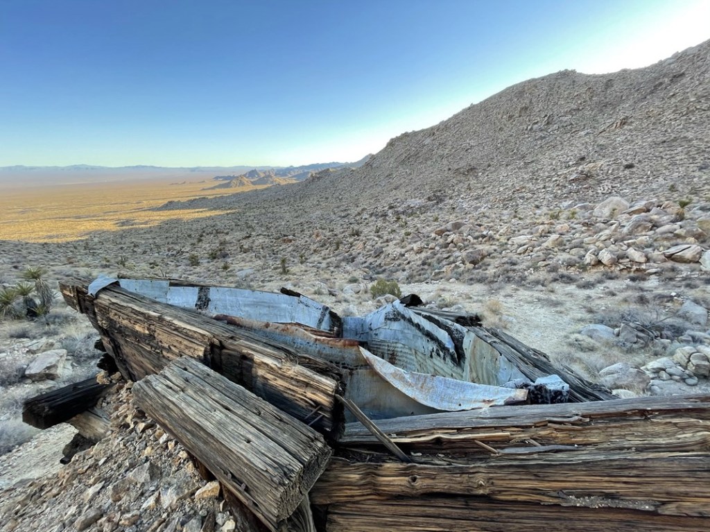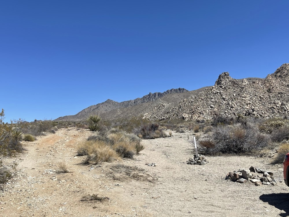 The route began by following the old road past the wilderness boundary towards the small mountain range. At 0.9 mile we saw an old corral off to the right side. We also observed a stone structure a bit further in the distance.