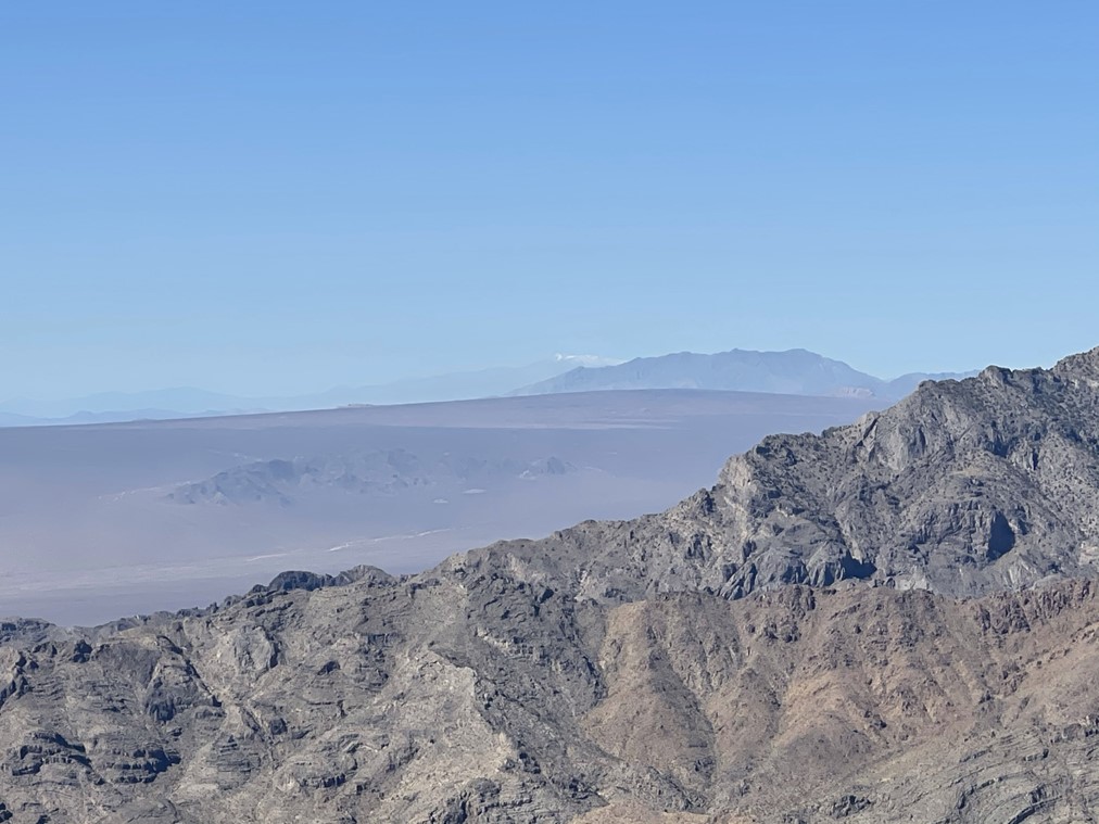 To the north we could see Clark Mountain at the northern end of the preserve. The snow capped peak behind it is Mount Charleston in southern Nevada.