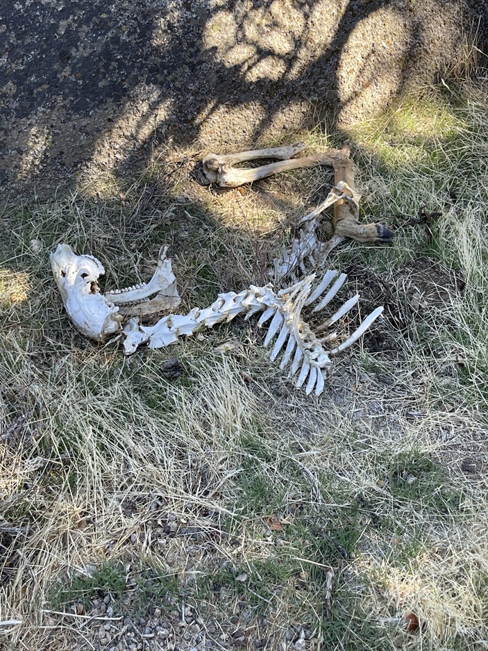 Soon after that we found a dead animal skeleton. It was pretty small, but it had hooves, so I figured it was a baby bighorn shape.