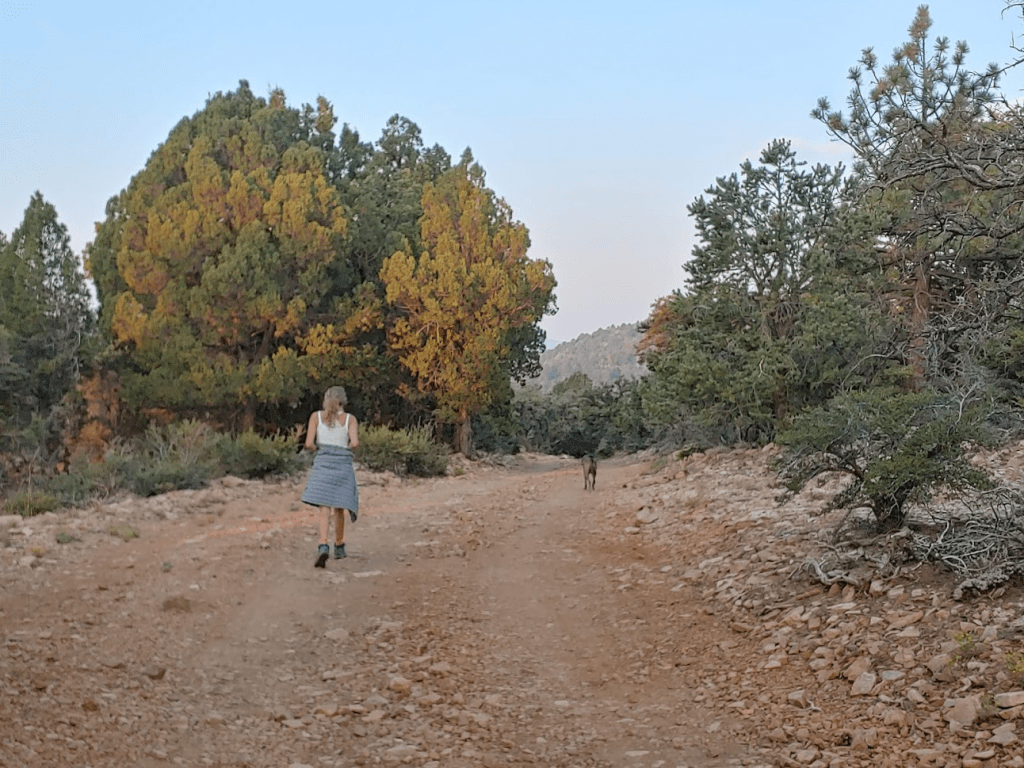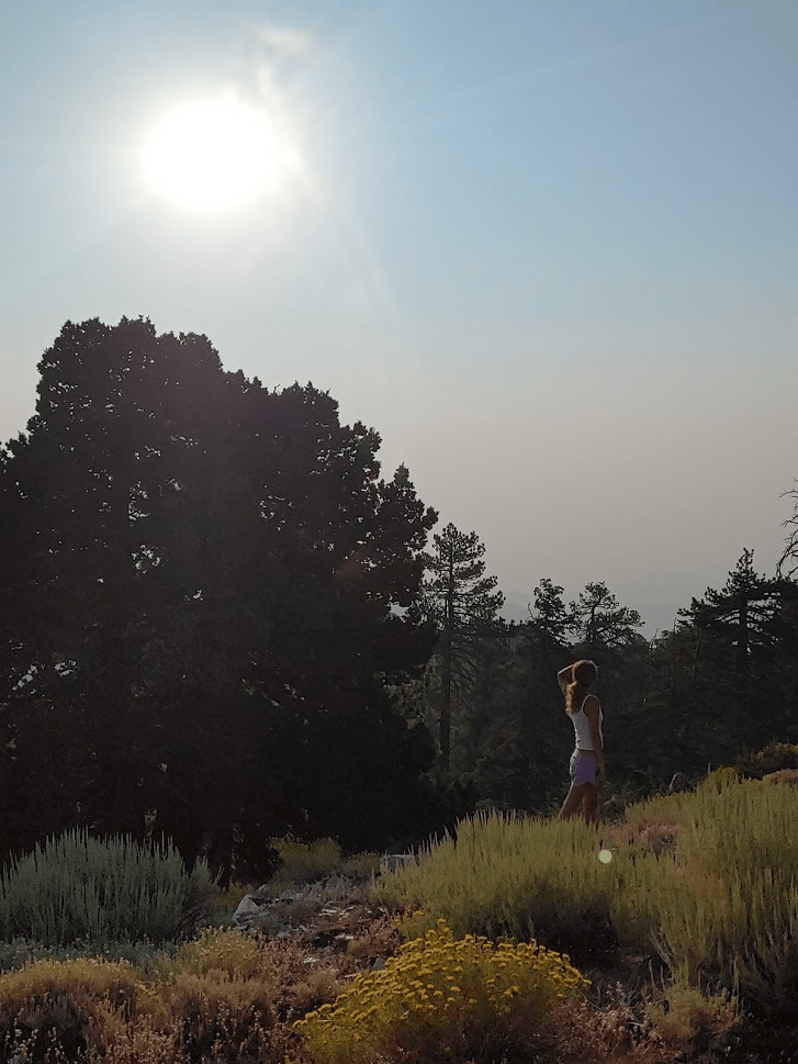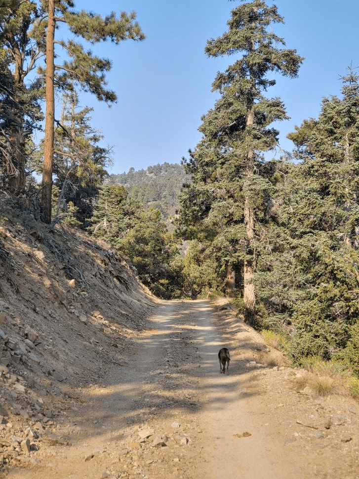 It was very hazy, so we didn’t have any views east towards the desert. The lack of views was a bummer, but it made the sun less intense which was good for Stella.