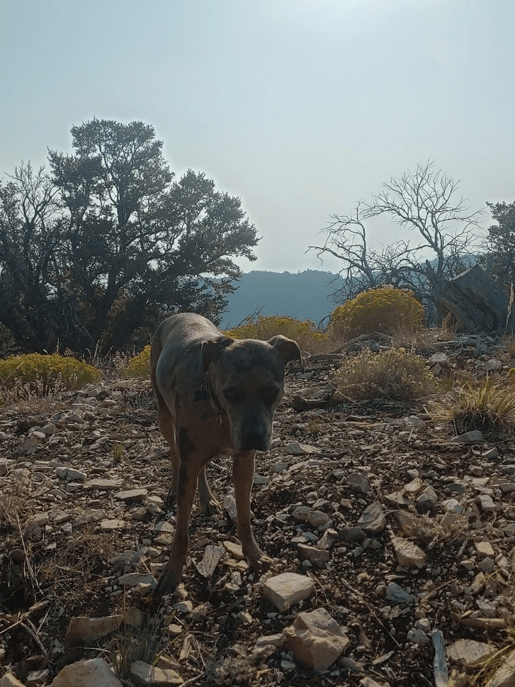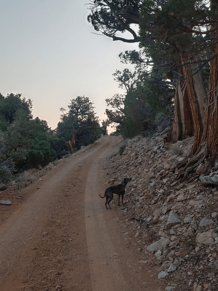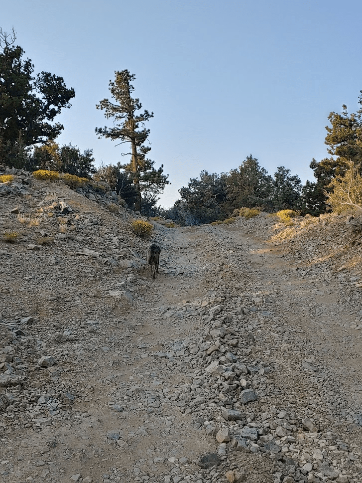 We took the same route down that we came up. At 4.43 miles we made a small detour to Peak 8905. This is a very minor Peakbagger peak less than a tenth of a mile off the road. Stella enjoyed the minor summit.