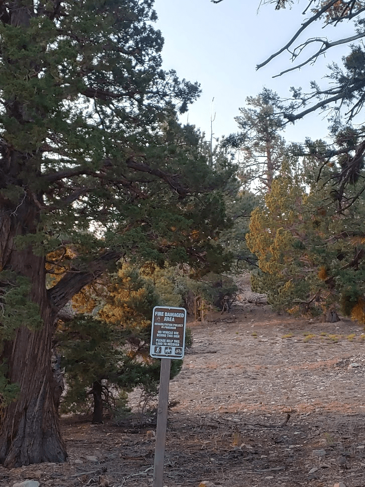 The “trail” is a 3 mile dirt access road to the summit. A large white gate blocks vehicular access for the public, but it was clear the road sees regular use from maintenance vehicles (there are communication towers/equipment on top).