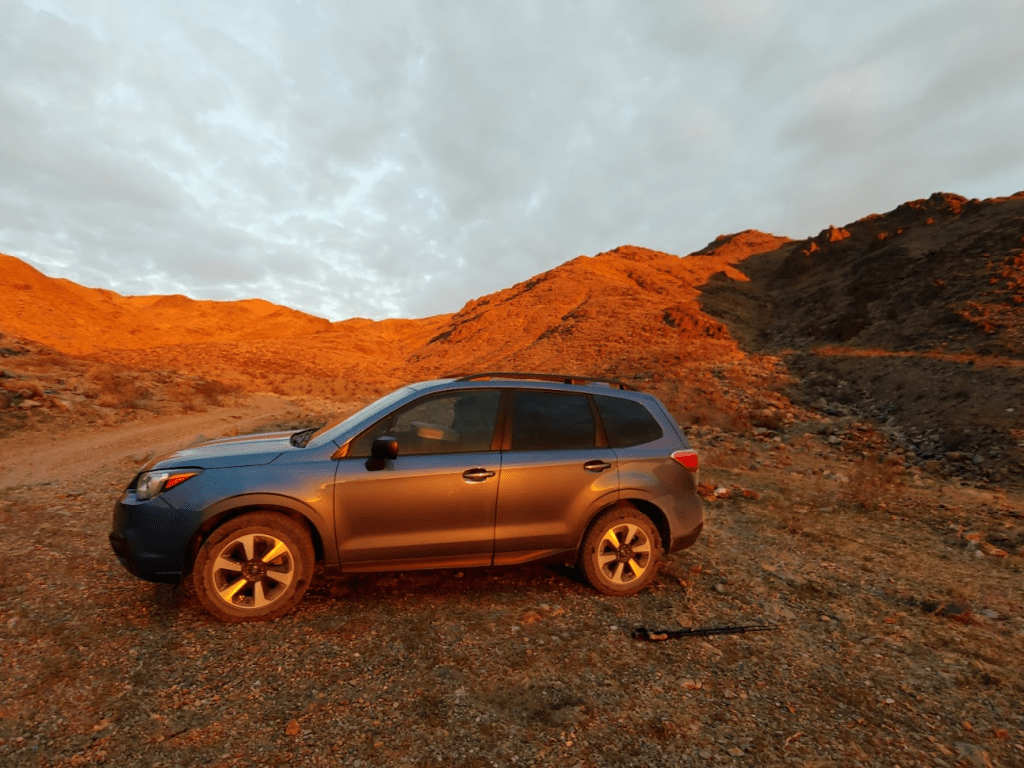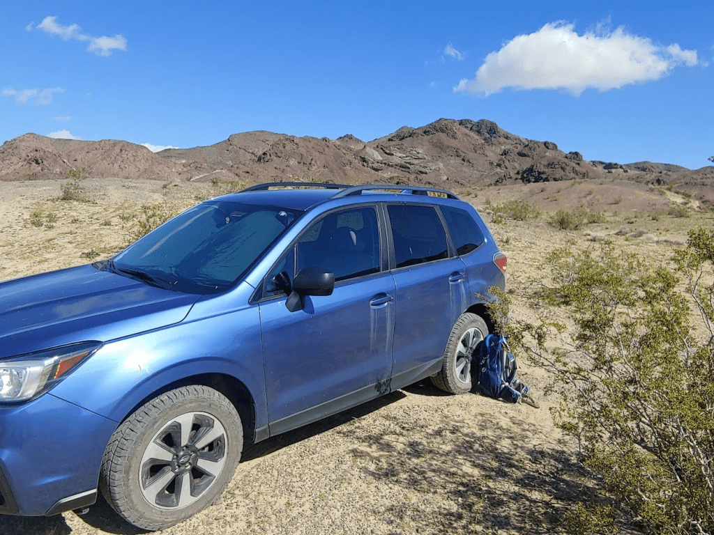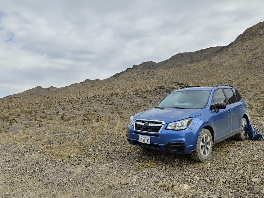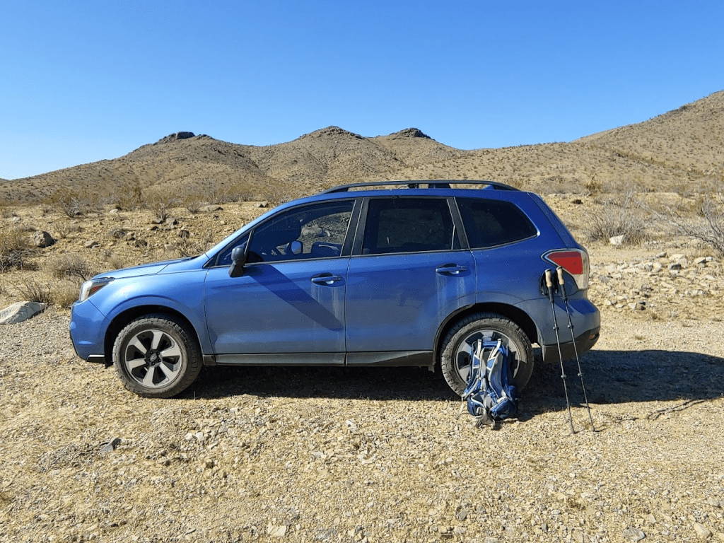 It had been a couple weeks since I went on an extended trip, so I decided to head out to the desert to climb some more peaks. Earlier in the week, I was originally planning to head to Death Valley National Park to climb some DPS peaks there, but there was rain/snow in the forecast for Sunday, and I decided Death Valley is too long of a drive for just one day of hiking. I decided instead to head to the southwest corner of the Mojave Desert and climb a few obscure desert peaks near Barstow, CA. I was planning to get in a full day of hiking on Saturday, and then had a few more lower elevation peaks (to avoid snow) in mind for Sunday if the weather held out. Getting to Barstow requires a long haul north up I-15 and I-215 through northern San Diego County and the Inland Empire. Traffic heading that direction can be awful on Friday afternoons, especially near Temecula and through Cajon Pass. I decided to wait until 6:15pm to leave, which ended up being a smart decision and I was able to avoid the worst of the traffic. My plan for Saturday was to climb the 3 main peaks in the Ord Mountains southeast of Barstow. They are simply called East Ord, Ord, and West Ord. East Ord is on the Sierra Club Desert Peaks Section (DPS) list so that was the peak I as most interested in. All 3 are included in Andy Zdon’s list of desert summits. My plan was to start with East Ord and then work my way to Ord and West Ord. I knew I would have time for the first two, but wasn’t 100% sure I would make it to West Ord. Since I would be trying to cram a lot in one day, I wanted to get as close as I could to the trailhead for East Ord so I could get an early start. I took Highway 18 from Victorville to Lucerne Valley, and then went east on Highway 247 to paved Camp Rock Road. I went 4 miles on Camp Rock Road and then turned right at a fork to remain on Camp Rock Road. After a mile or 2 it turns into a smooth dirt road (like 40 mph smooth). After about 9 miles from the fork, I turned left onto a small dirt road heading northwest. Following Andy Zdon’s directions, I went under some power lines, turned right at a junction, and then continued for a mile or so where I parked for the night.