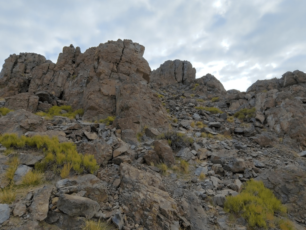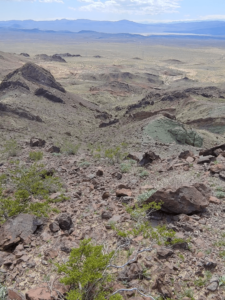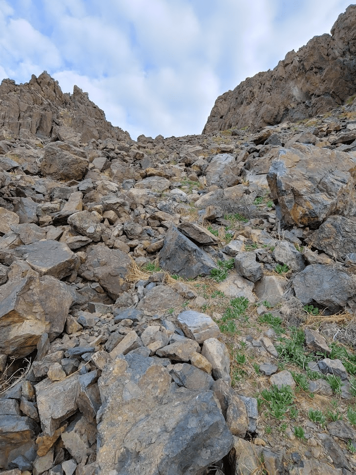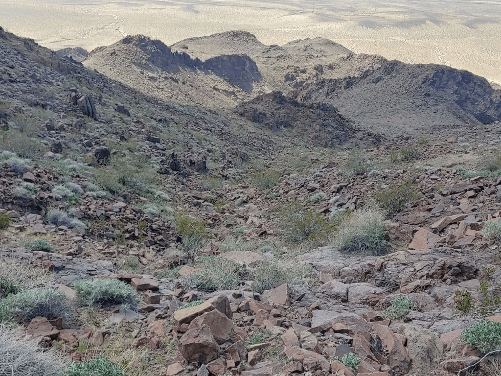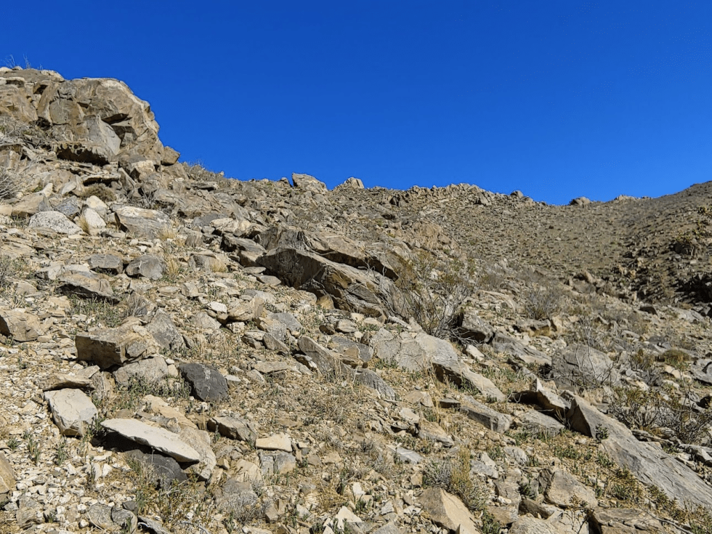 Eventually the wash peters out and I started climbing up a steep slope of loose rock towards a false summit.
