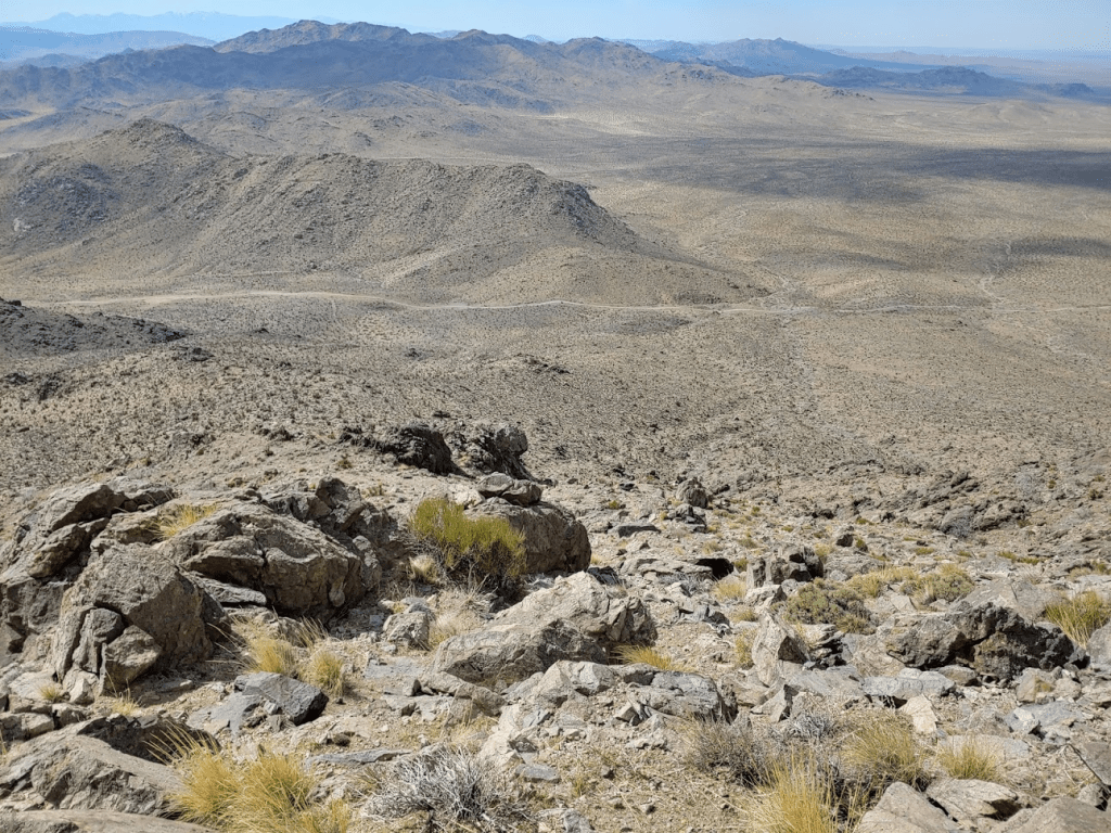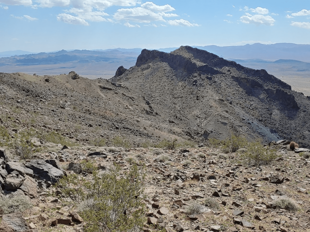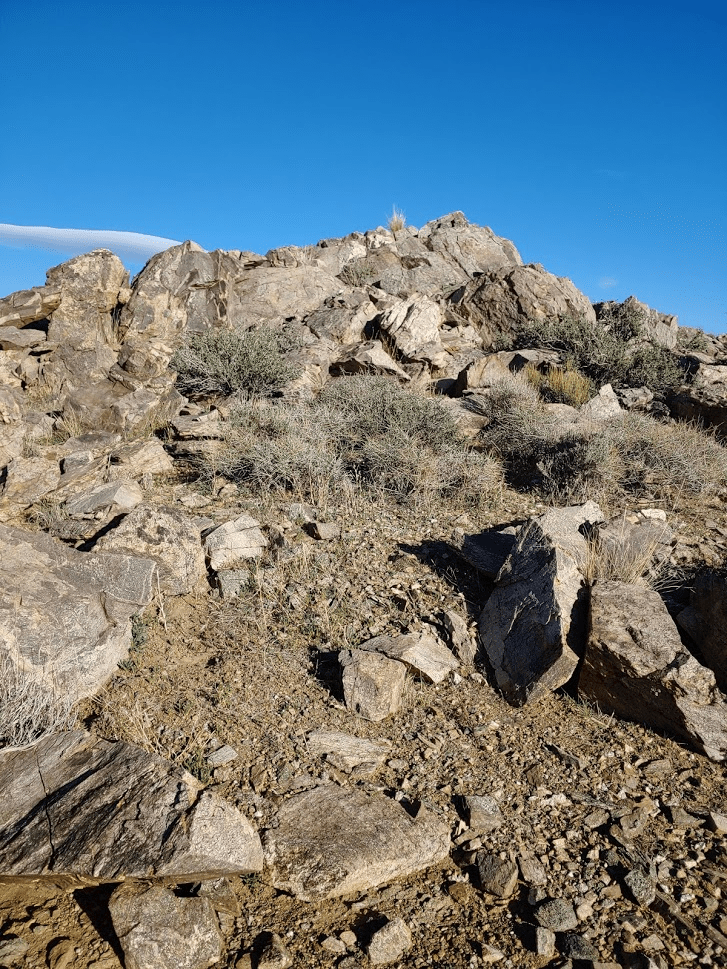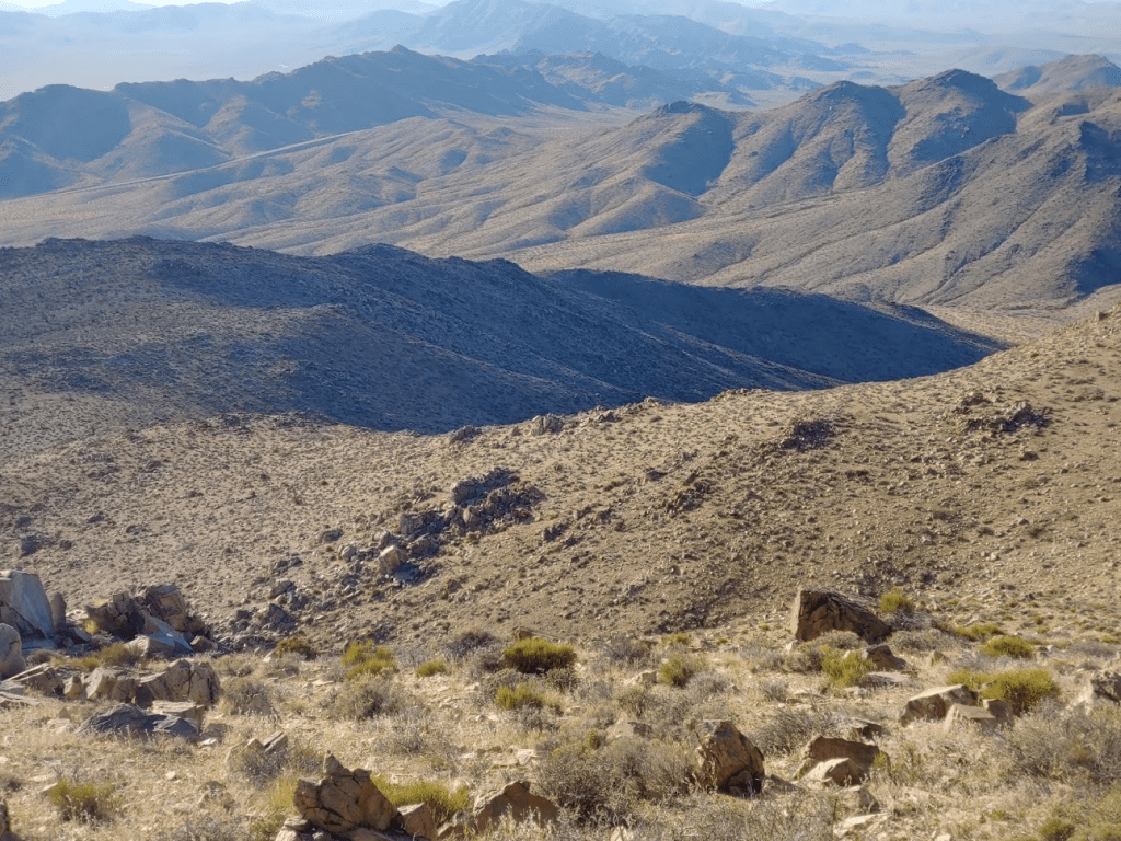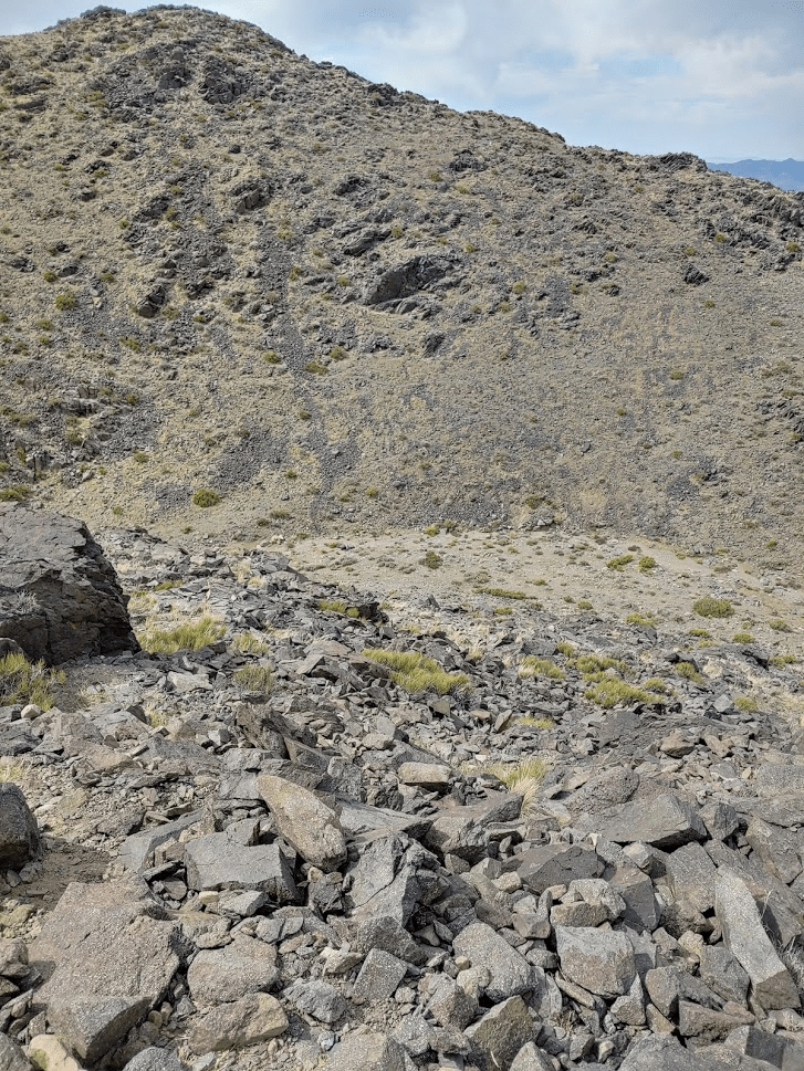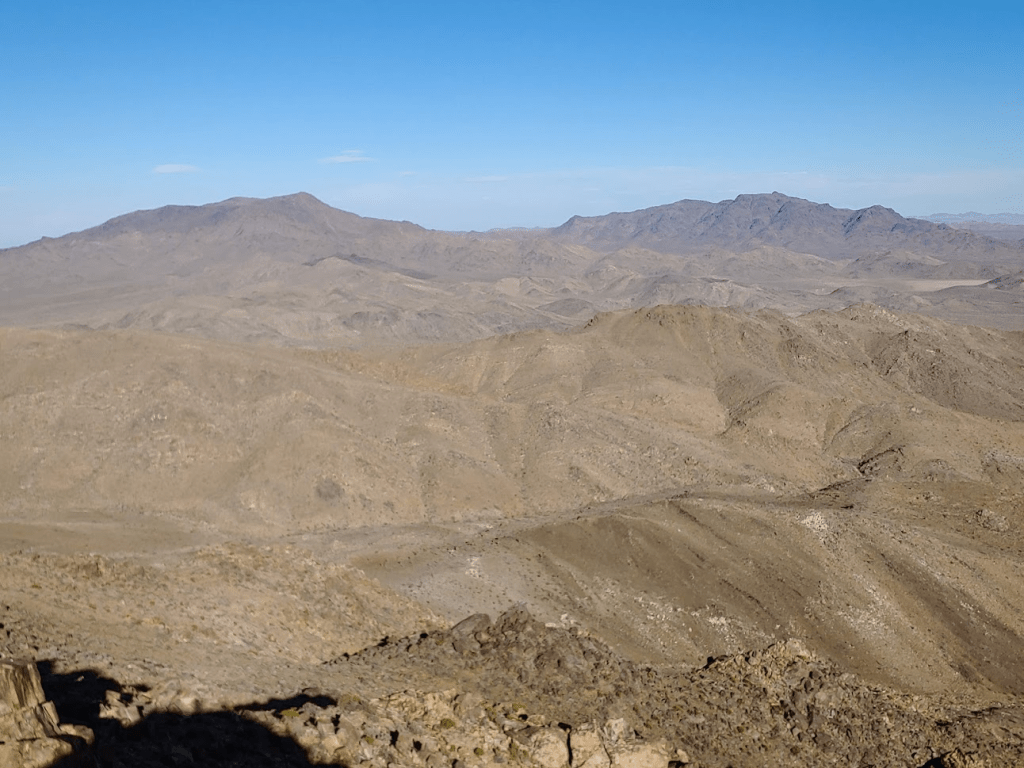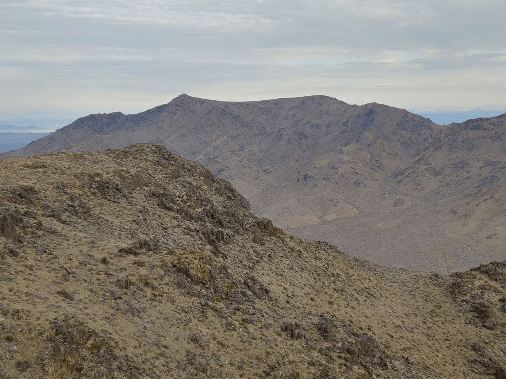 Like the first two peaks, the footing was solid and there wasn’t much unfriendly vegetation to deal with. These mountains are extremely dry. I’m used to seeing pinyon pines and juniper at these elevations, but there aren’t really any trees in this range. It took me an hour to cover the 1.91 miles to the summit.