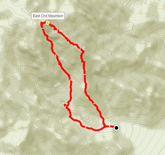 I went over a small pile of rocks that was labeled on Peakbagger as West West Ord Mountain. It was really just a small bump with very little prominence, so I’m not sure why it’s labeled on the map.