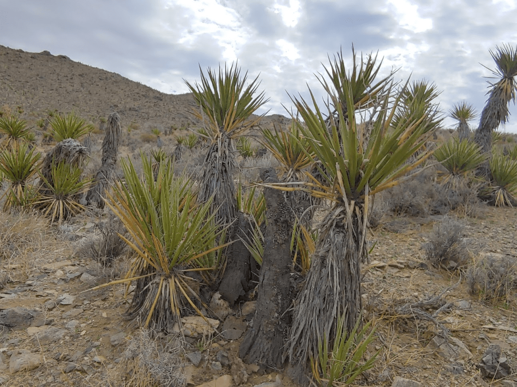 I started this hike at 10:16am. The route begins by crossing a short span of open desert to the base of the peak. I had to dodge around yuccas and pencil cholla, among other desert plants.