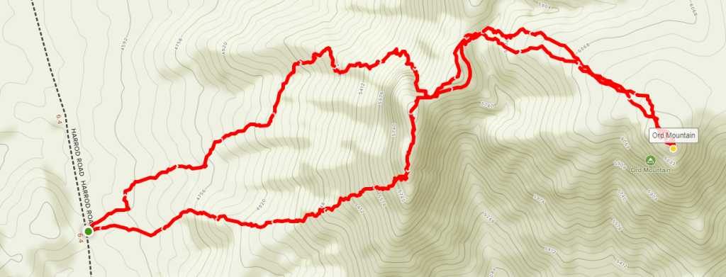At 5525 feet, West Ord is the lowest of the 3 Ords and is the easiest to climb. I started hiking at 2:26pm from about 4084 feet.