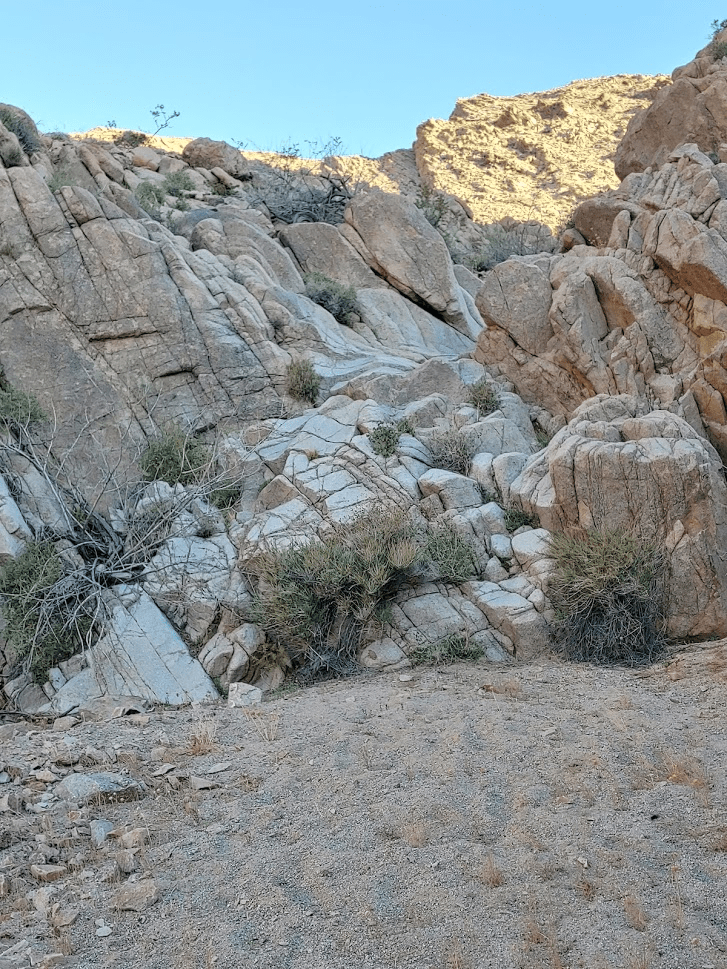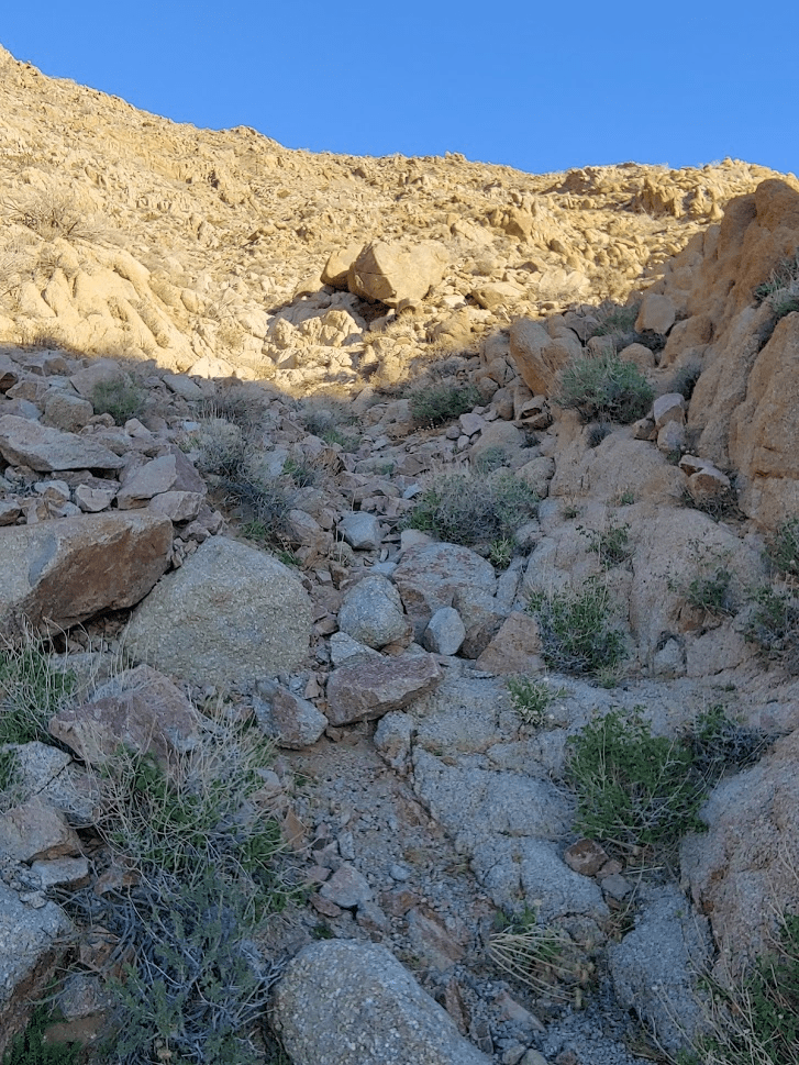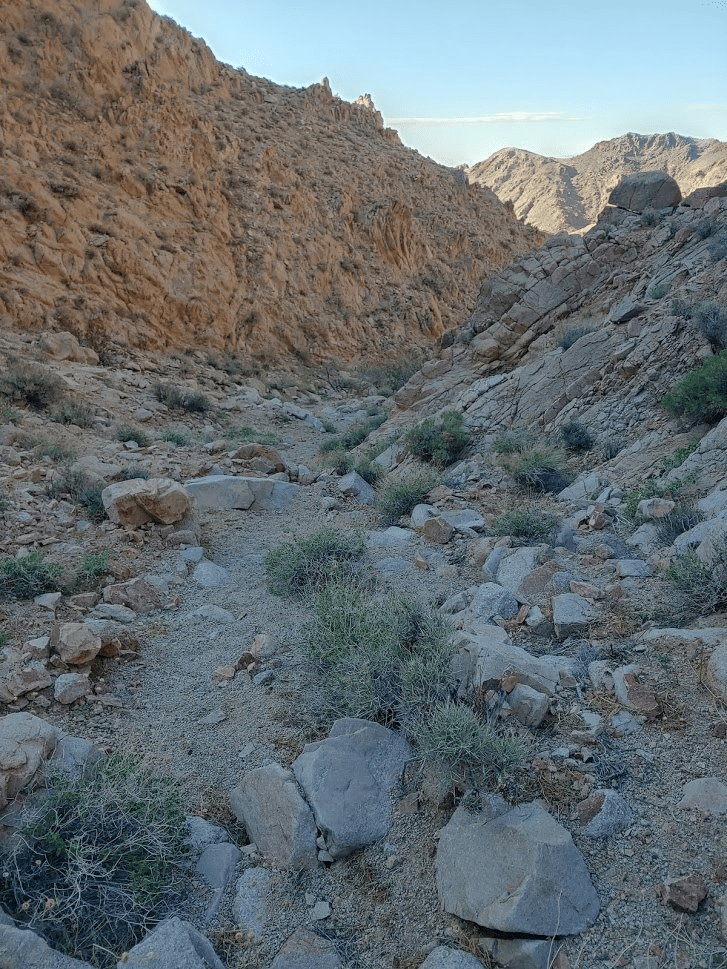 The wash was rocky, but the vegetation was very sparse which made things easier.