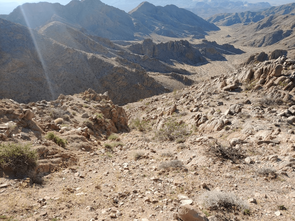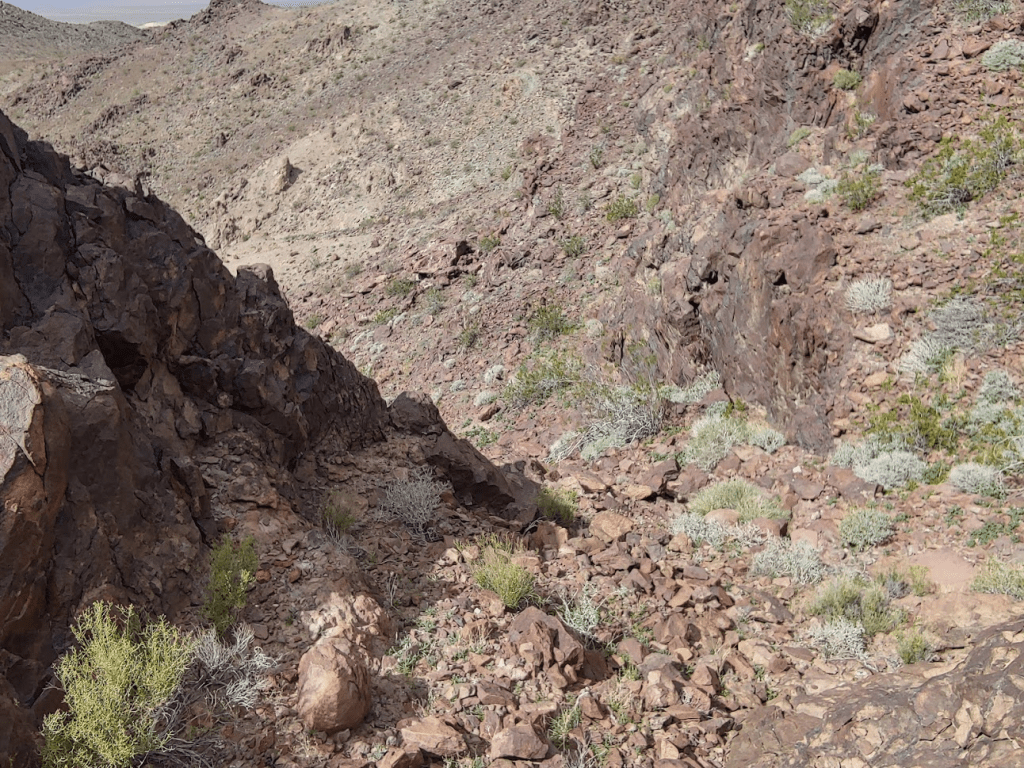 I reached the top of the wash just below the summit. The below picture is a shot looking back down the wash I just ascended.