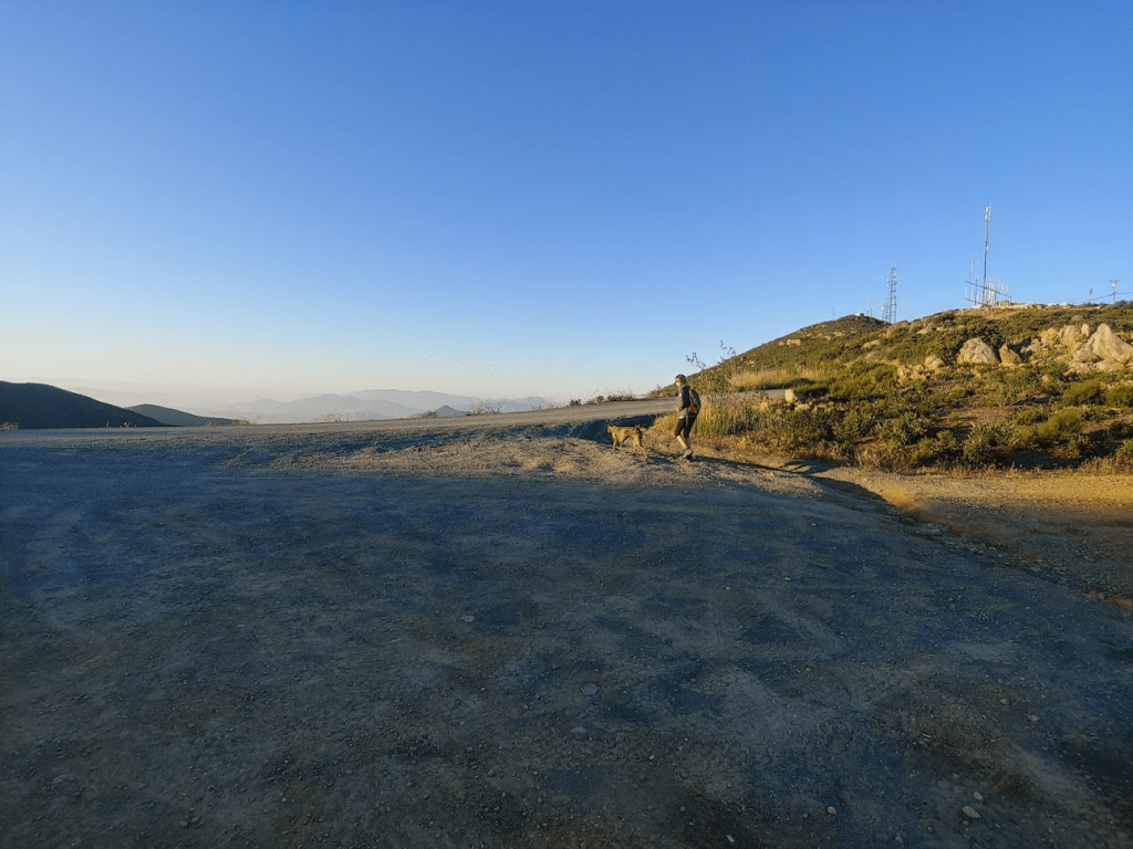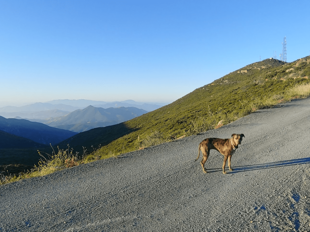 It was really starting to warm up which made me glad we started so early for Stella’s sake. We also started to see a lot of other people out and about. We passed a few more border patrol trucks, a few regular trucks, some mountain bikers, and even a runner. We passed by the spur road leading to Otay Mountain but kept going since I intended to save that for the way back. We could see Peak 3162 in the distance.