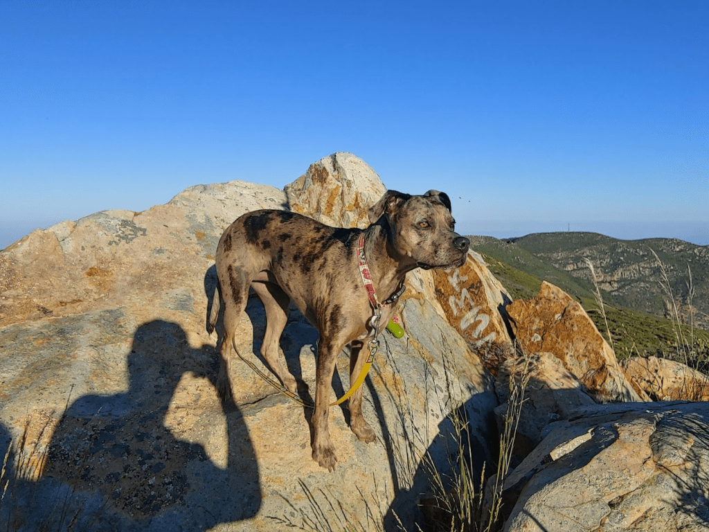Due to an unfortunate foot injury, it had been a few weeks since my last hike. I had recently got something stuck in my foot but didn’t realize it for a few days before it got infected. After going on antibiotics, the doctor cut whatever it was out of my foot a few days later. He thought it was perhaps a piece of coral, or some kind of marine animal. I still had the stitches in my foot, but it was feeling a lot better, so it was finally time to get out for another hike. My girlfriend Alexia, and our dog Stella would be joining me. I didn’t want to do anything overly strenuous because of my foot, so I settled on driving up Otay Mountain (3566 feet) and doing a few peaks near its summit. Otay Mountain is not as well known as many other peaks in San Diego County, but it is actually the 5th most prominent peak in the county, and it looks very impressive from the surrounding area. Due to its proximity to the Mexican border, the area is heavily used by Border Patrol. There are 3 main roads leading to the top of Otay Mountain, one from the east, one from the west, and one from the north. I had actually climbed Otay Mountain 2 summers ago, walking up the length of the eastern road for a healthy 15 mile round trip hike. My primary objective for today’s hike would be a nearby peak 3551 feet above sea level. Since Otay Mountain is not included within the federal wilderness boundary (due to the many communication towers on its summit), Peak 3551 is the highpoint of the Otay Mountain Wilderness. I had recently gotten it into my head that I wanted to climb as many California wilderness high points as I could, so I figured this was a good enough reason to return to the area. We also intended to climb an unnamed peak of elevation 3162, as well as the main summit of Otay Mountain. We woke up at 4:30am and hit the road at 5. It took about 45 minutes to reach the Pio Pico RV Resort on Otay Lakes Road on the north side of the mountain. From there it was a 5.3 mile drive to Doghouse Junction on a decent gravel road. The road started out pretty bumpy but gets better after the first half mile. High clearance is recommended on this road due to the bumps and some rutting, but 4WD is not needed. We started hiking at 6:25am.