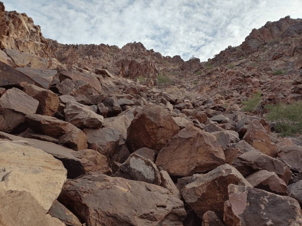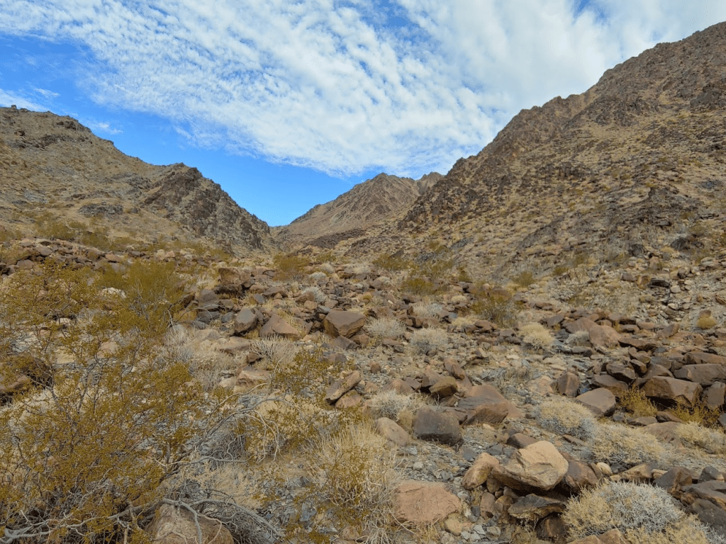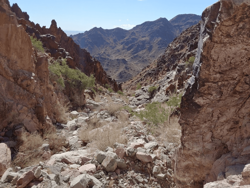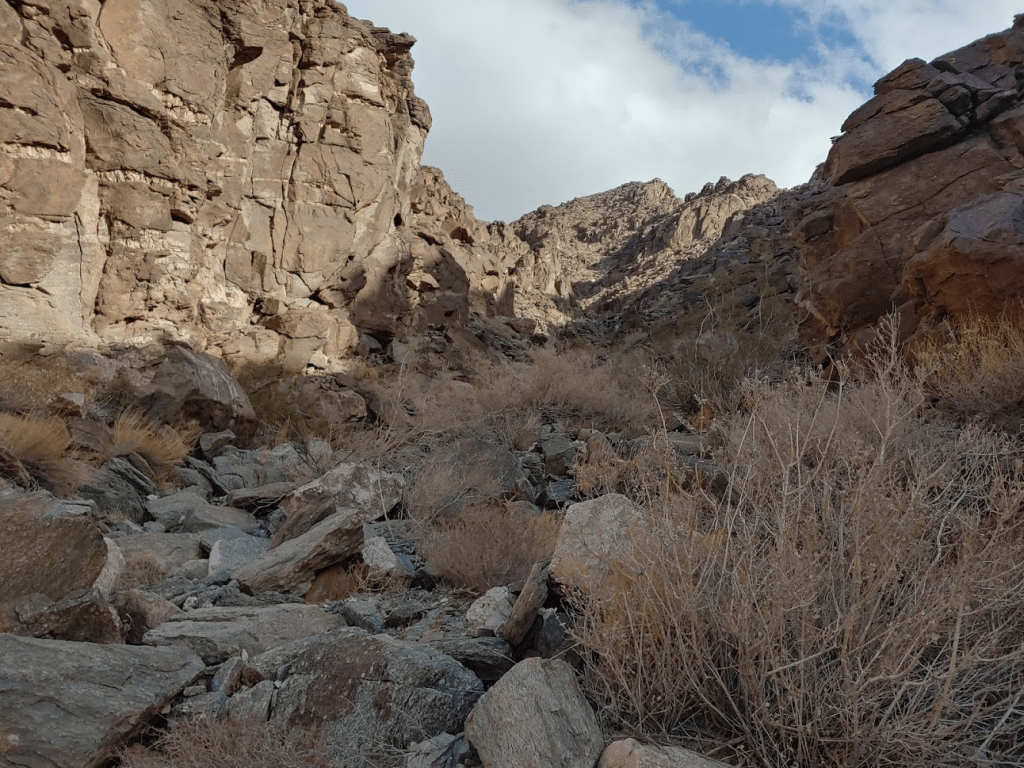 There are 2 established routes up the mountain from this side. I chose to ascend via Route B, which involves climbing up a canyon on the southwest side. I started by climbing up a wide wash.