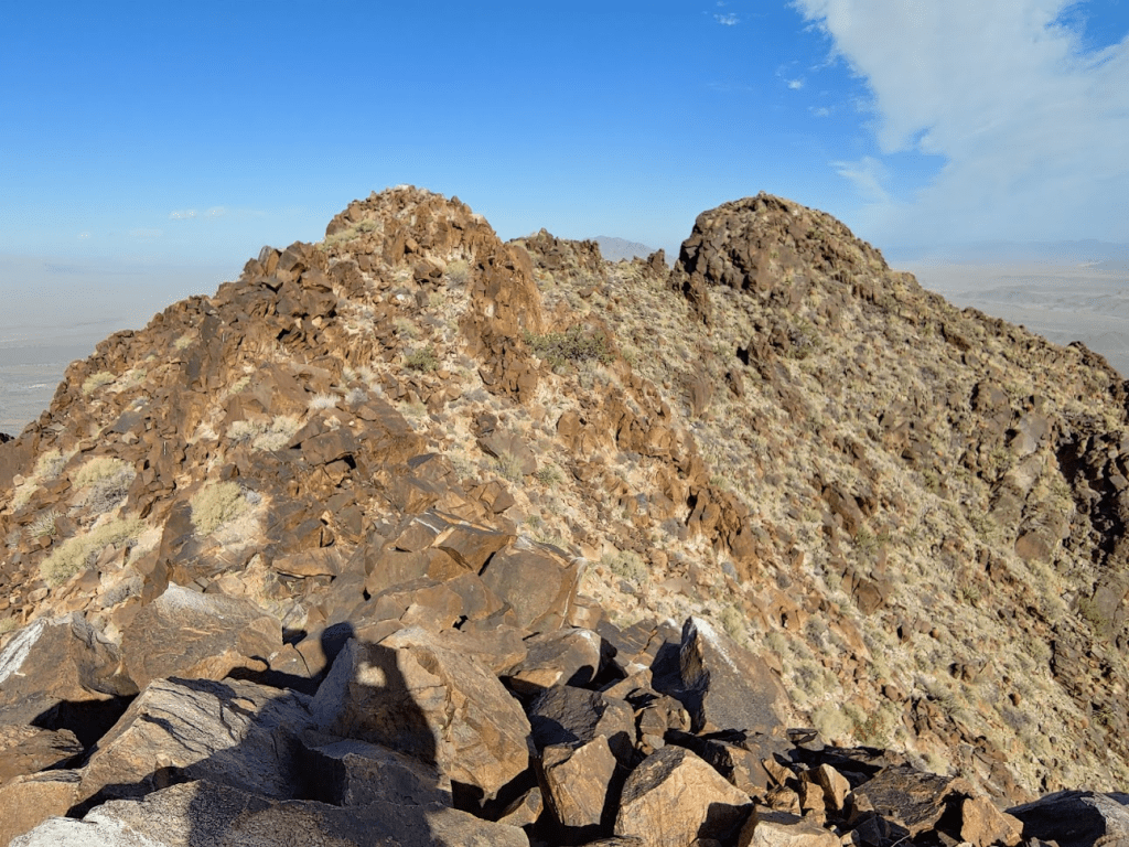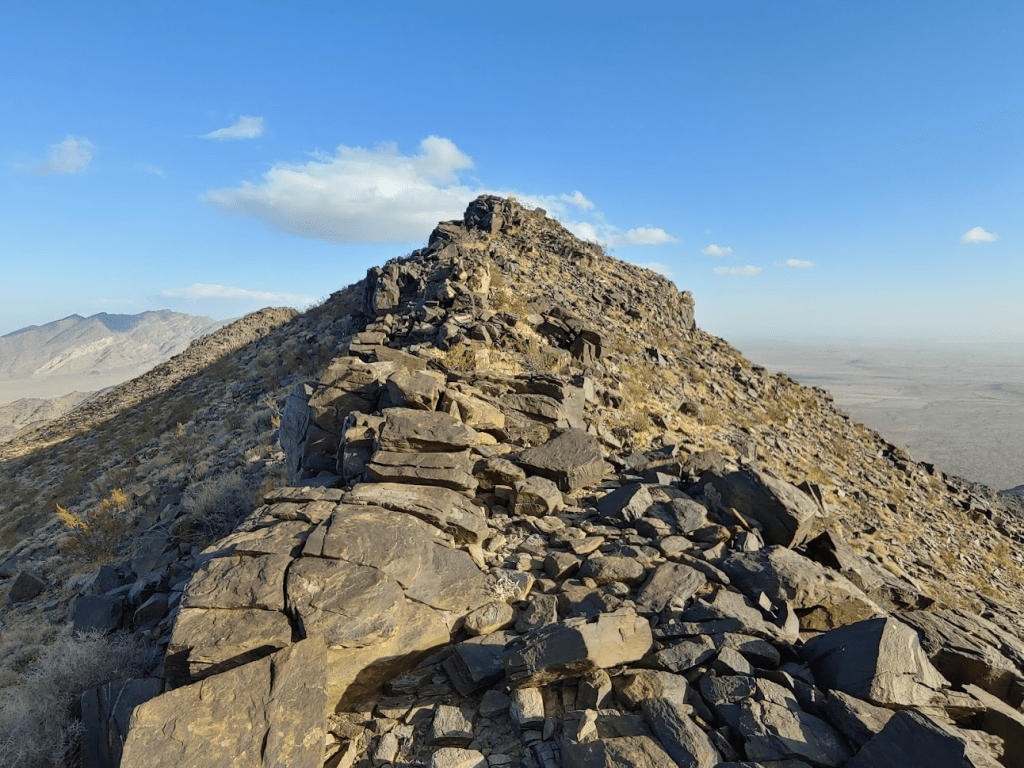 I realized I was actually off the standard route, which approaches the summit from the west. The ridge was dicier than I was expecting, as I had to make a few easy class 3 moves to climb over a few obstacles. Eventually I reached a false summit. The true summit was very close now.