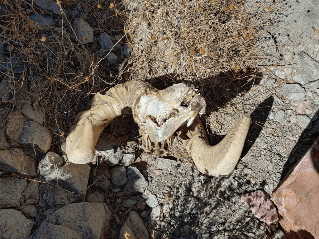 This canyon was pretty much the same level of difficulty as the ascent canyon. It was fairly steep, but I still was able to make good progress. At 7.61 miles I found a big horn sheep skull. The horns were still intact. The rest of the skeleton was a few feet away.